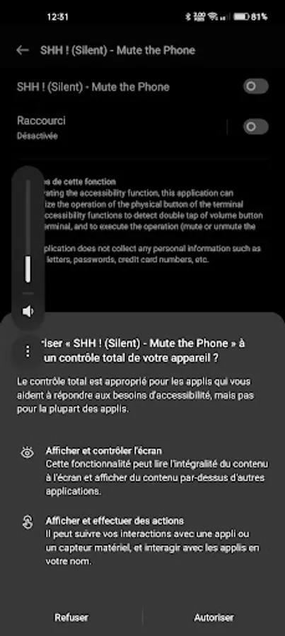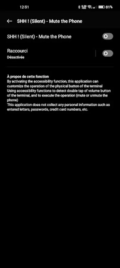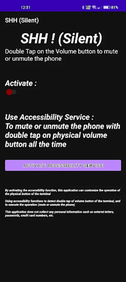 Note : Accessibility Service is use for mute or unmute the phone with double tap on physical button all the time (any screen and screen lock) .