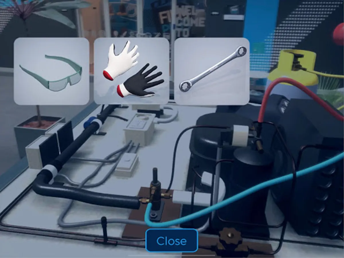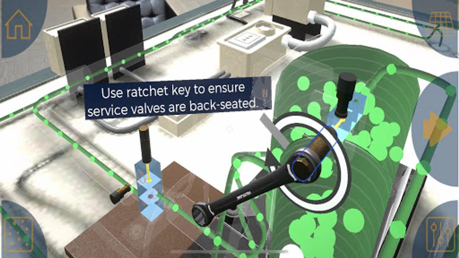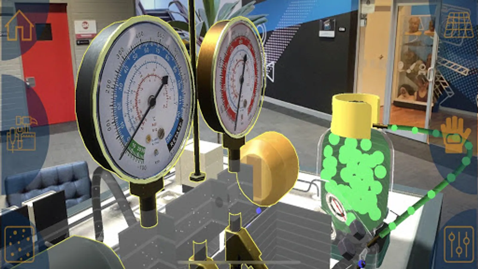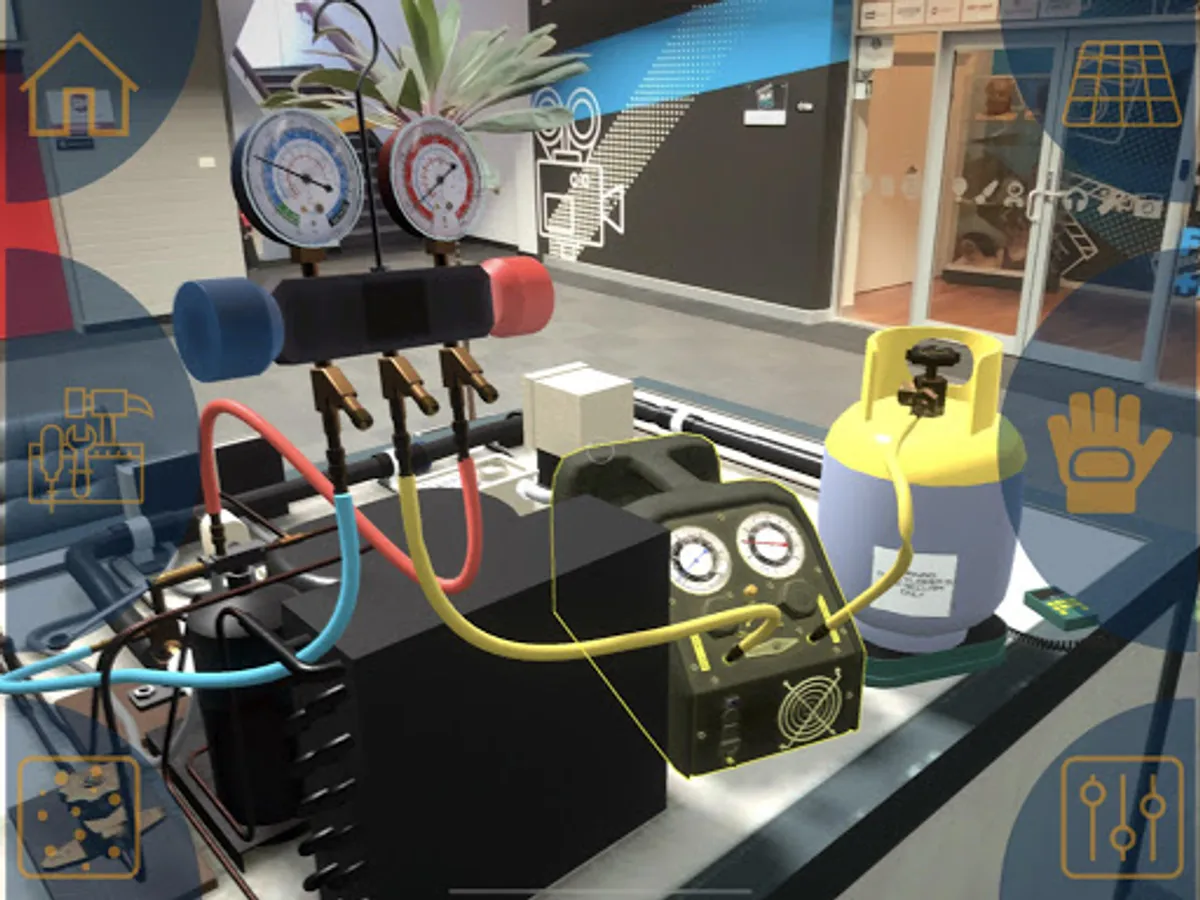 Using the app, apprentices select a system and watch a detailed walkthrough before undertaking the process themselves through an interactive AR experience. By training with this modern-day tool, apprentices have a realistic experience of the process in a setting without the confines of the classroom, access to tools and the freedom to make errors without compromising safety all while reducing the likelihood of accidental emissions of refrigerant.