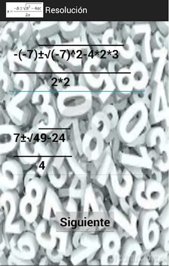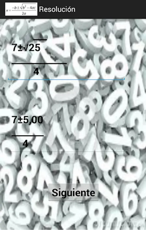 This application shows all the steps performed to solve a quadratic equation.