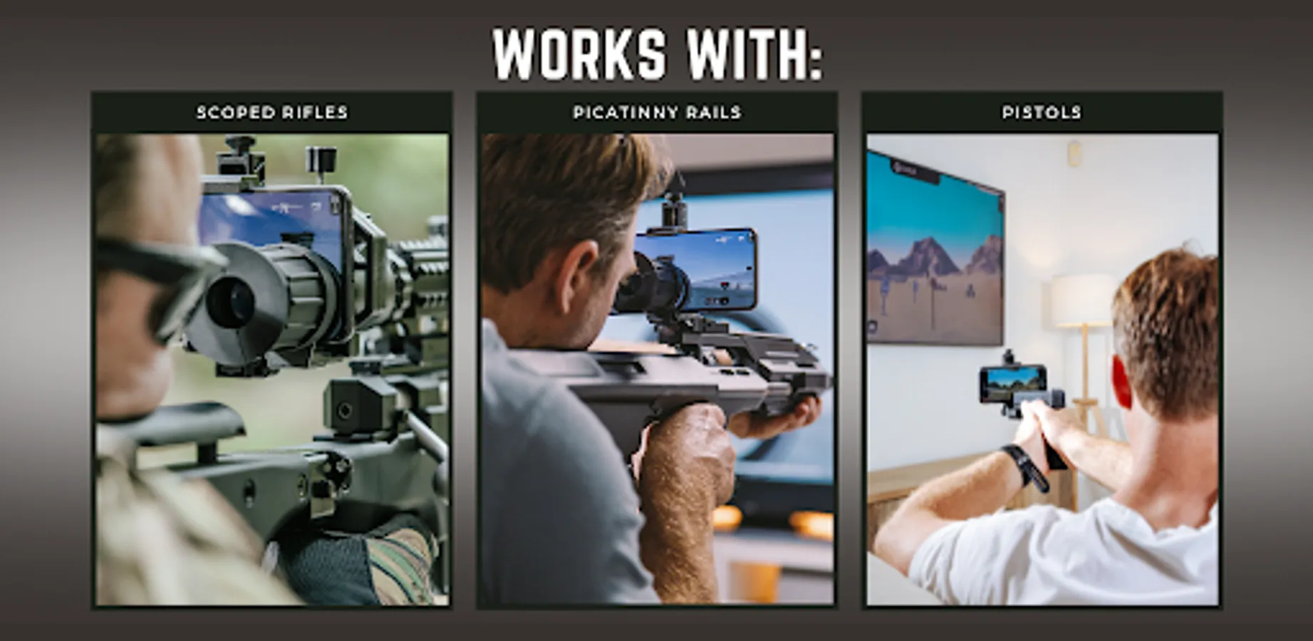 Virtual-Shot turns your phone into a portable shooting range when attached to any real rifle, AirSoft rifle or GelBlaster.
