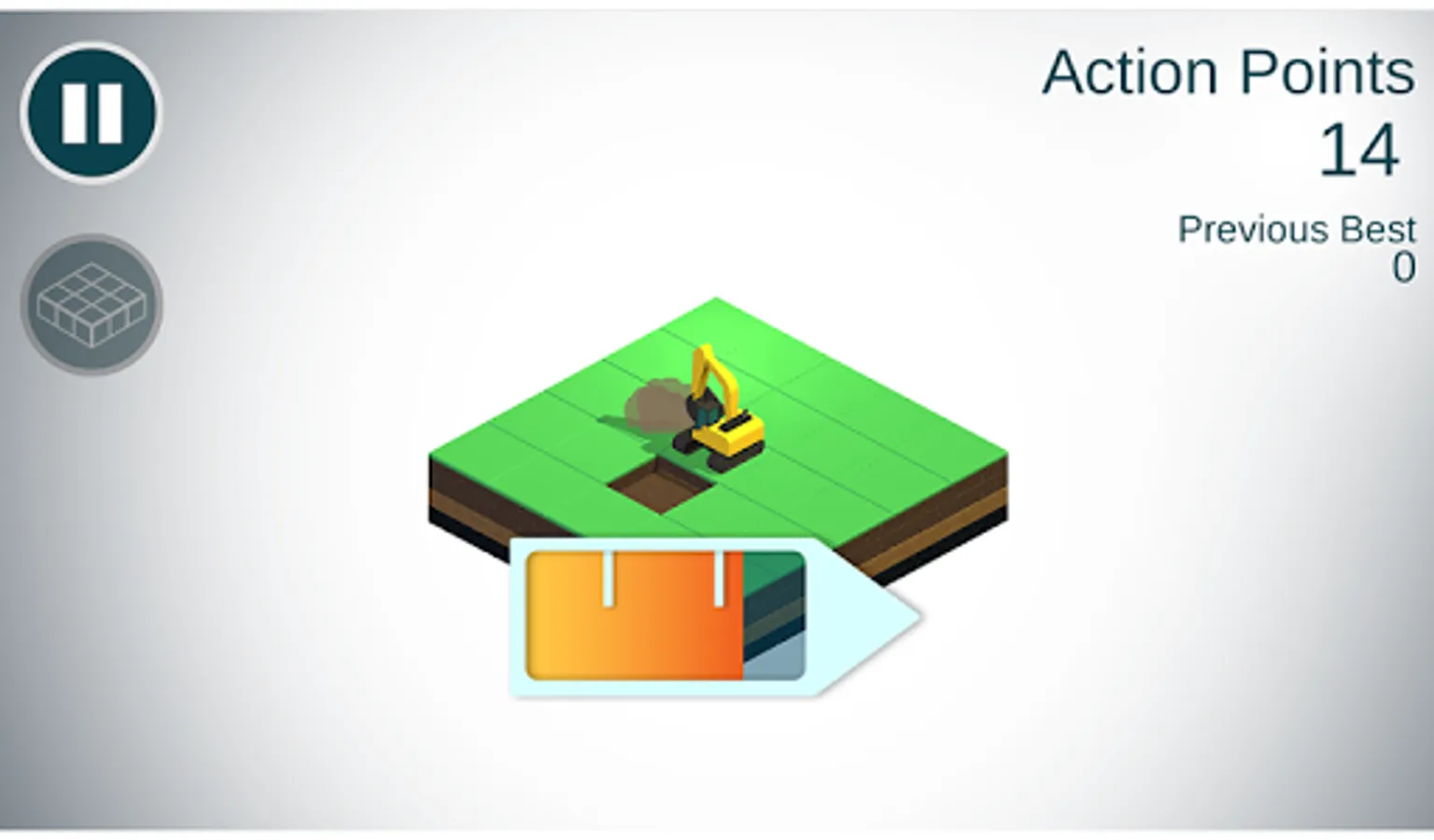 Select your route and how deep you want to go. Be careful not to dig yourself into trouble, and always remember, it’s important to be efficient! Every block traveled and every scoop costs you Action Points. The less Action Points you use, the more stars you will get. Levels get more challenging as you go. Get three stars on all 25 levels to be a master excavator.