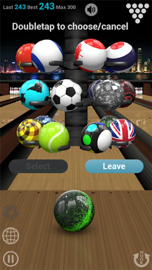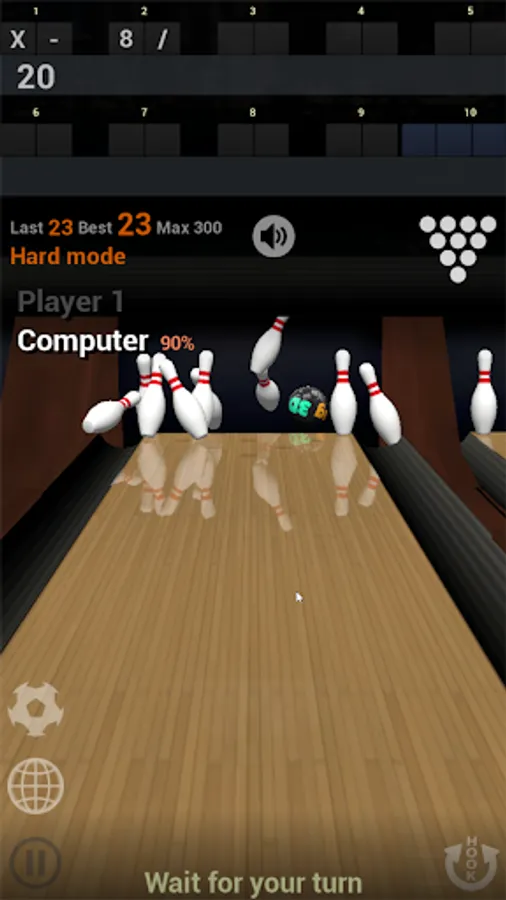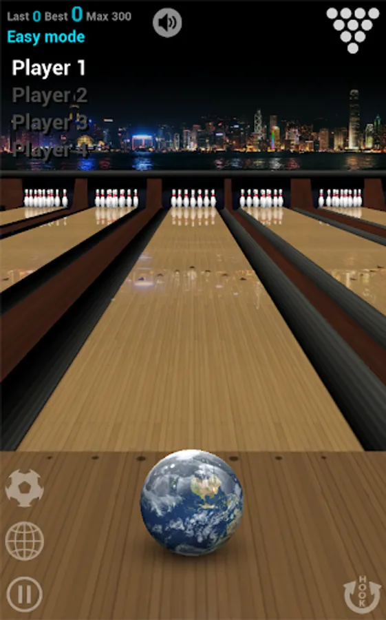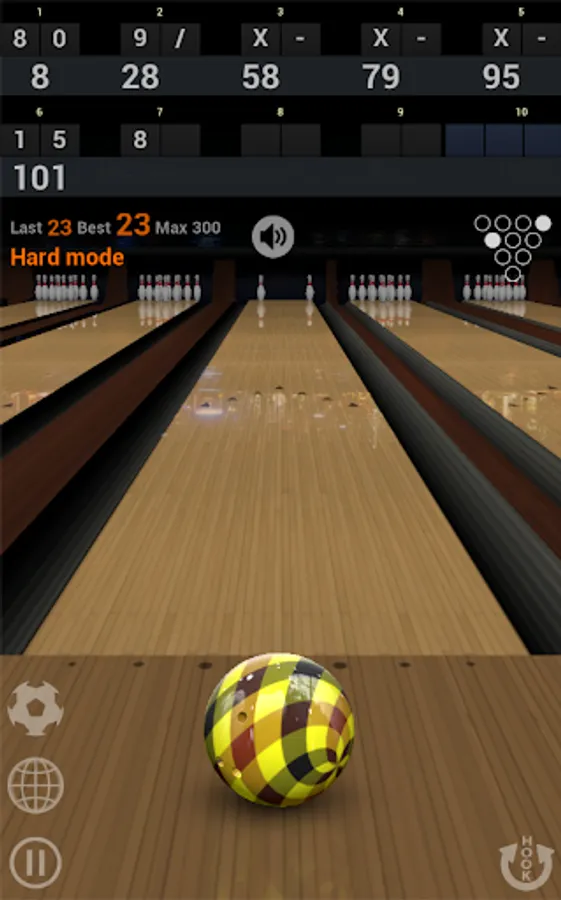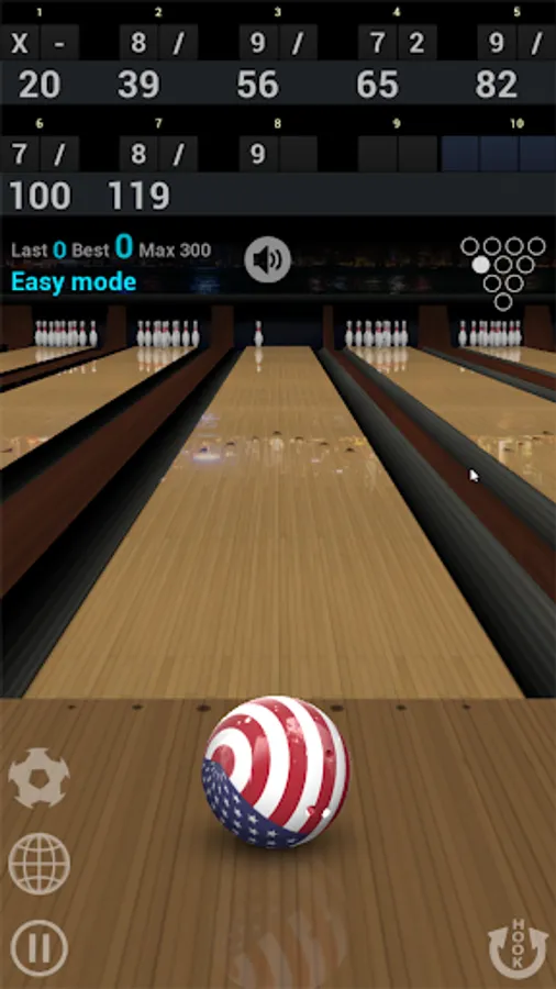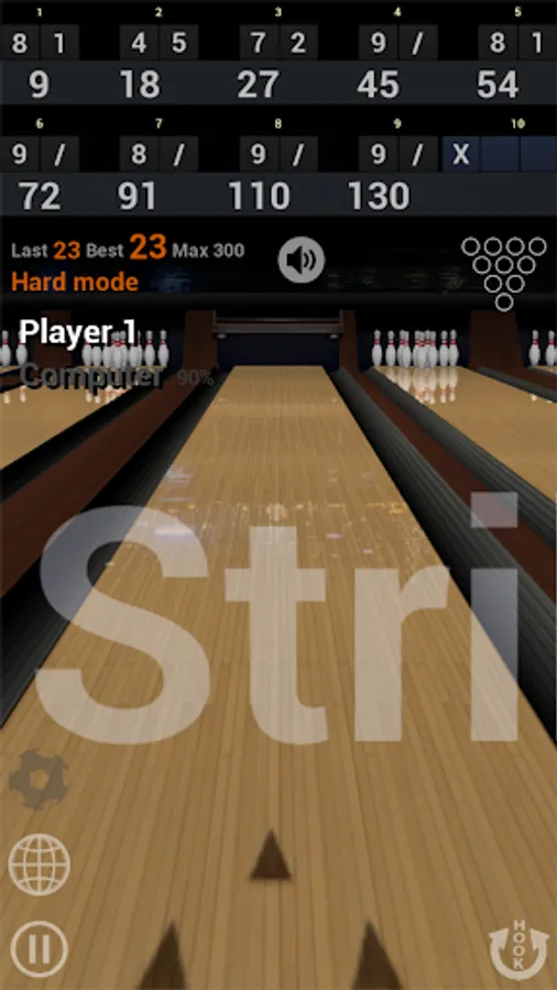 * Slide your finger on the screen from the starting line towards the pins (the speed is not important, what matters are the touchpoint and the drop-out). The longer the distance is between the first contact and drop-out, the faster the ball goes.