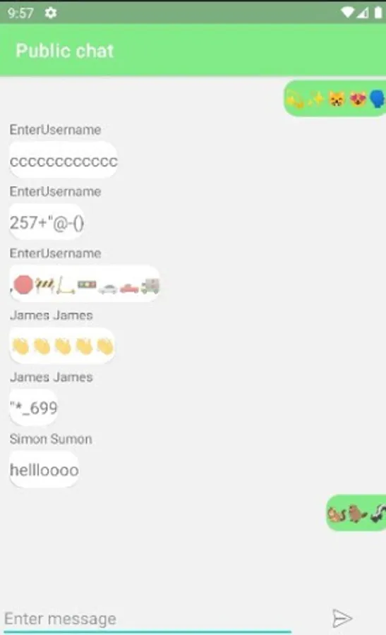 In SimpleChat you can use private chat or public chat, which is available for every user in the application.