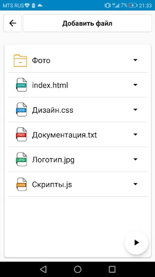 The site creation system is based on a folder system, which allows you to add various types of files.