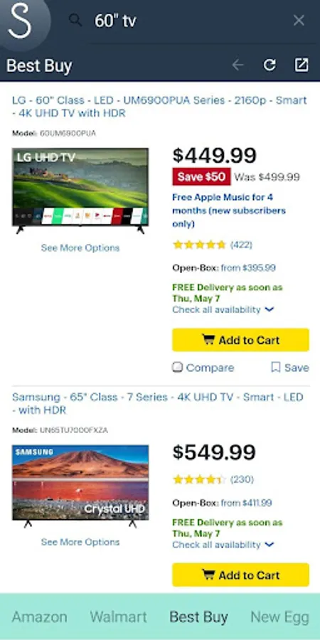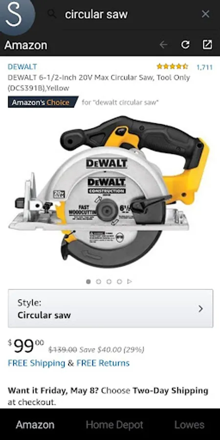 With Simply Shop you get to choose the sites you know and trust. You can search up to 4 major retail sites all with a single search. Easily tab back and forth between them to compare products, prices, and reviews. At anytime, you can launch the native website or app that you're shopping directly. Save time. Save money. It's that simple.