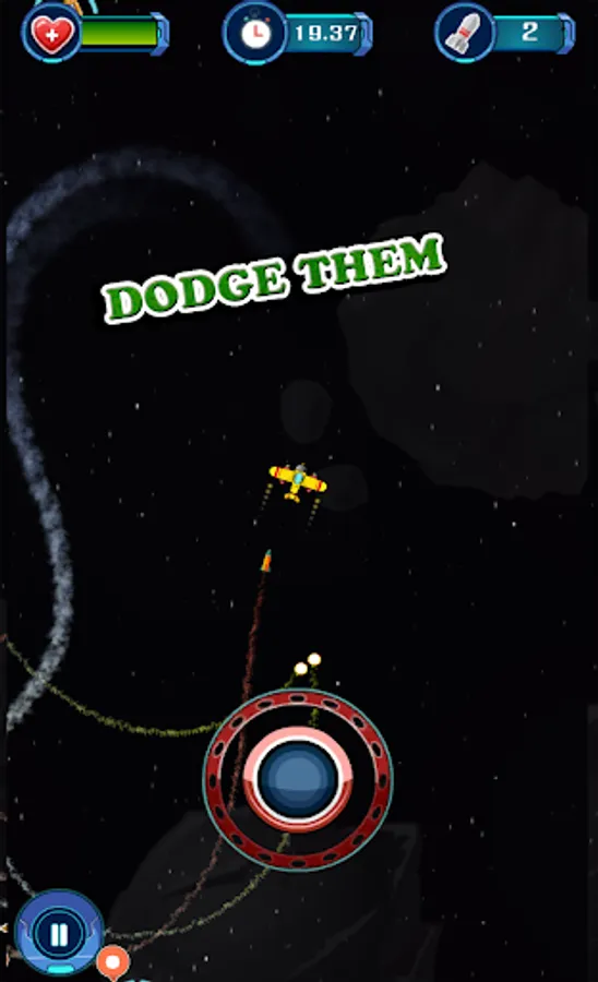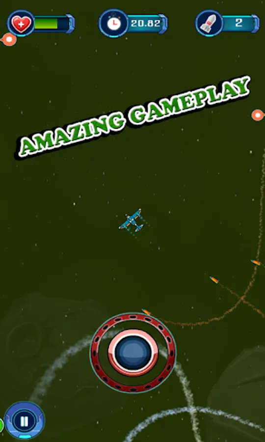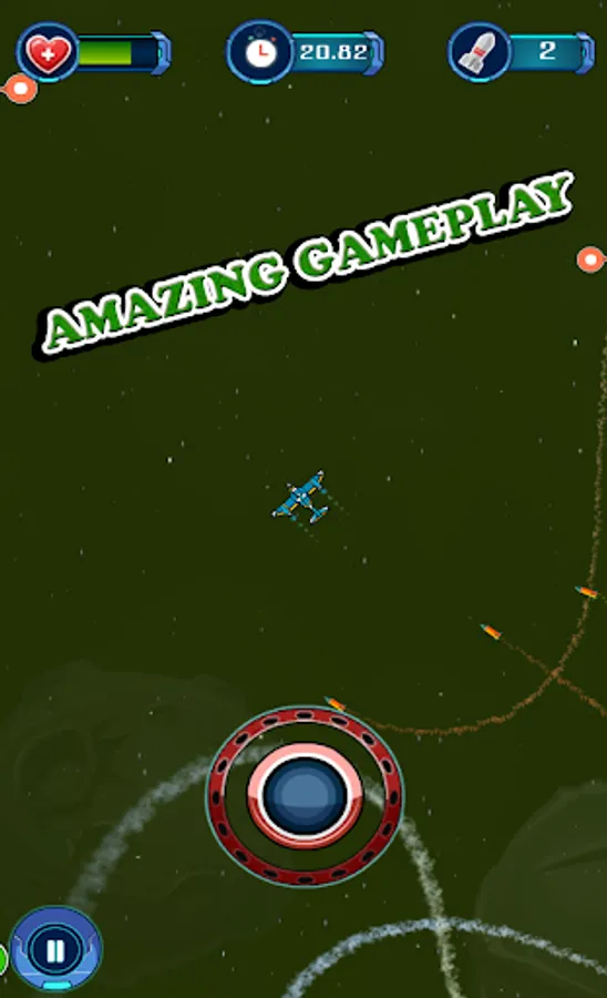 Use the simple control to fly your plane and avoid the missiles. Make them collide with each other and collect stars to increase final score.