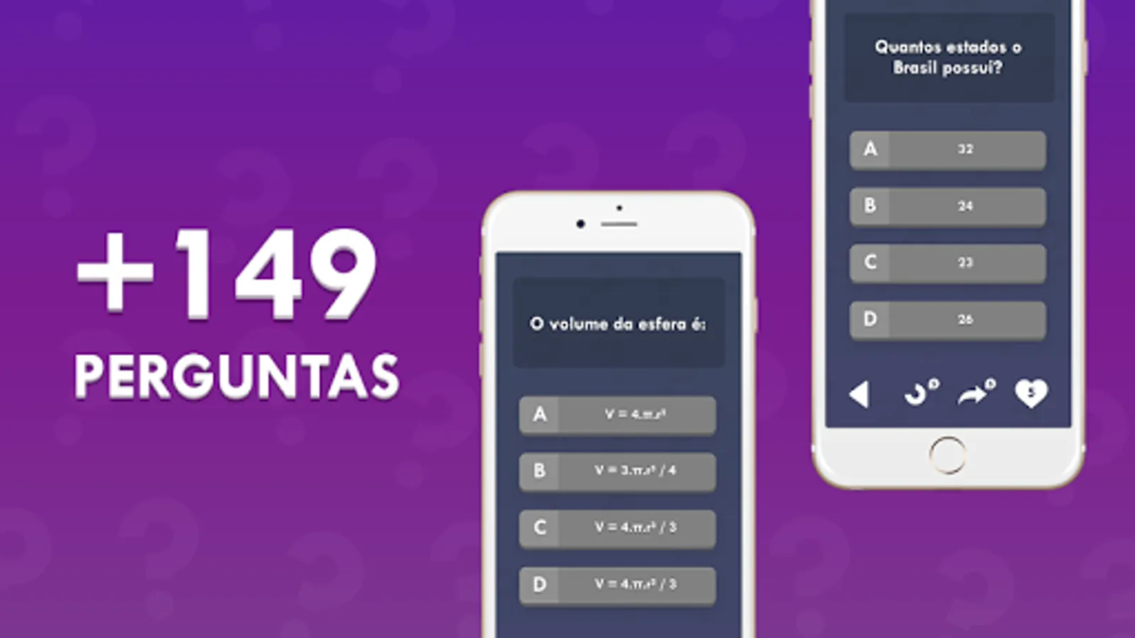 Test your knowledge in a fun way in this game consists of over 149 questions related to various fields of study among them: Exact, Human, Life.