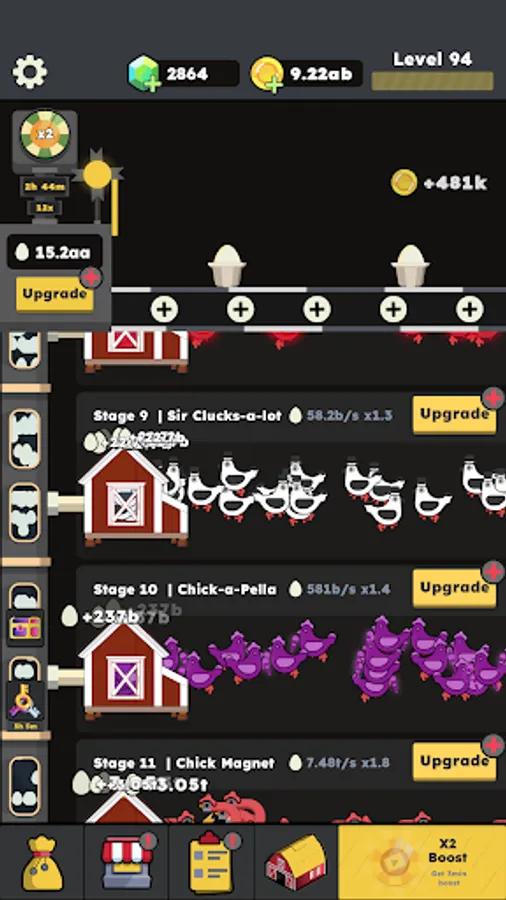 Use the profits from your egg business to unlock a wide array of exciting upgrades. Enhance your chickens' productivity, boost egg value, and even accelerate your farm's growth. Invest in state-of-the-art equipment to optimize egg collection and distribution. Keep a keen eye on the market to make smart decisions and expand your cluckdom rapidly!