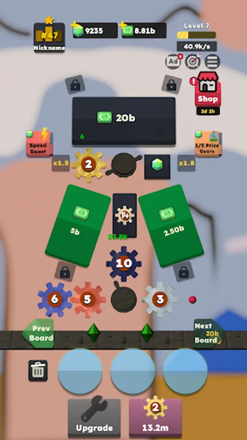 But wait, there’s more. You can also use money and gems to upgrade your gears and boost your income. How big can you grow your gear factory? How many gears can you fit on the board? How much money can you make in a day? Find out by competing with other players on the leaderboard. See who can become the ultimate gear master in Idle Gears. Download Idle Gears today and get ready to spin, click, and earn!