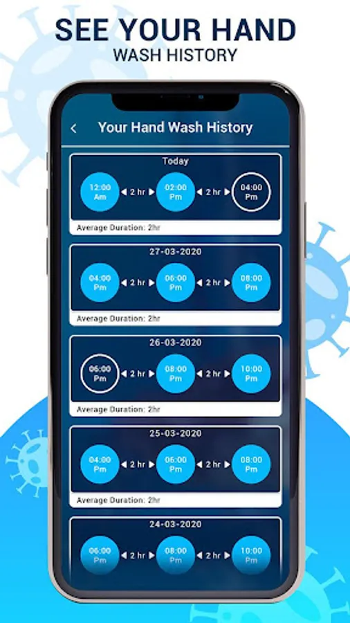 Hand Wash Reminder is specially designed to notify users on their scheduled time for the hand wash. You can set recursive time in hours for notification, also you can see the hand wash history and average time between hand washes.