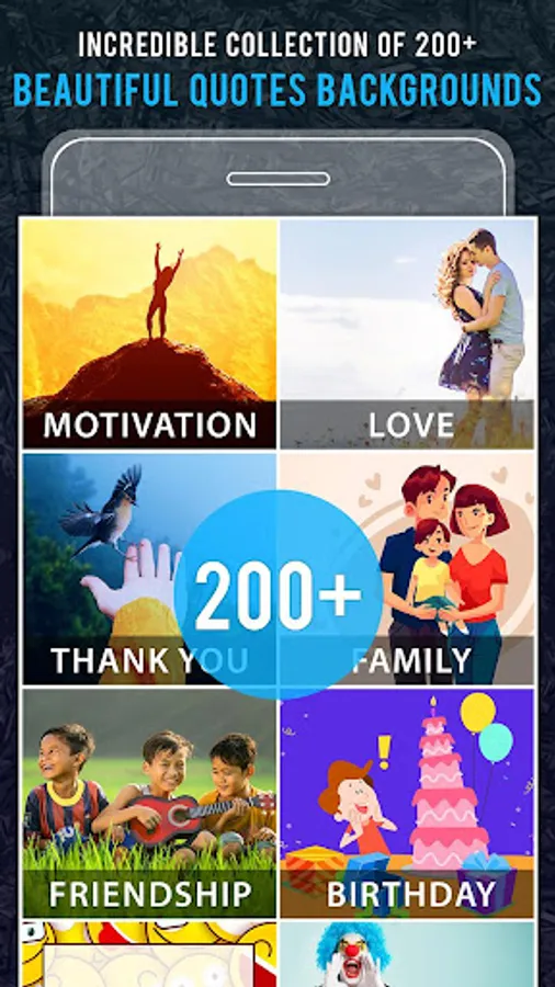 -Select a Photo from any 20+ categories of Backgrounds on which you want to add Quote. Various Categories of Photos Pre designed by for following quotes: