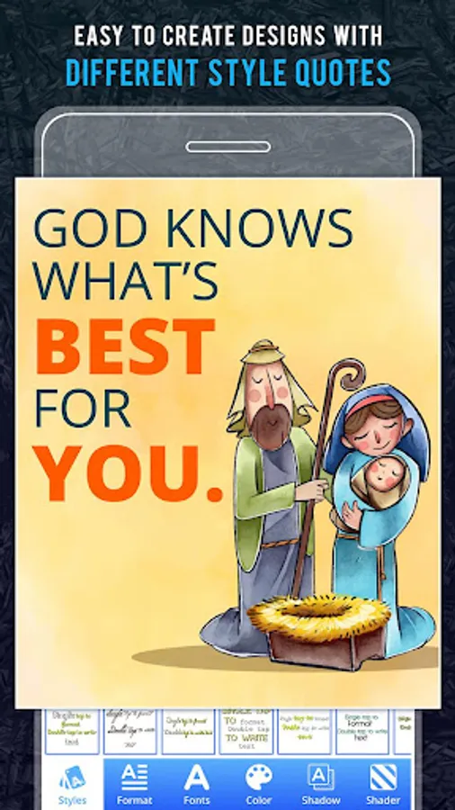 -With an easy to use User Interface that allows minimal effort in placing Quotes on photo, Stylish Quotes gives the flexibility to modify Fonts, Formats, Colors, Shaders, Shadow of entire text or punched text.