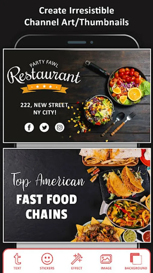 "Thumbnail, Cover, Posts & Channel Art Maker" allows you to create amazing designs without any graphic design skills. Now everyone can become a professional designer delivering impressive results with this powerful graphic design tool! Whenever you feel inspired, you can always create awesome designs with our extensive artwork and easy to use tools, Irresistible Youtube Thumbnails, Channel Arts, crafting jaw dropping posters, flyers, cards, invitations, social media graphics, banners and much more.