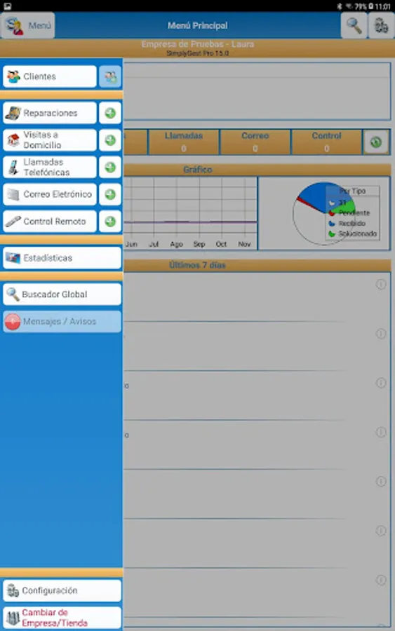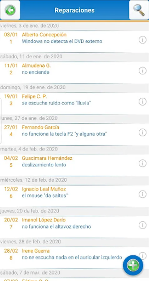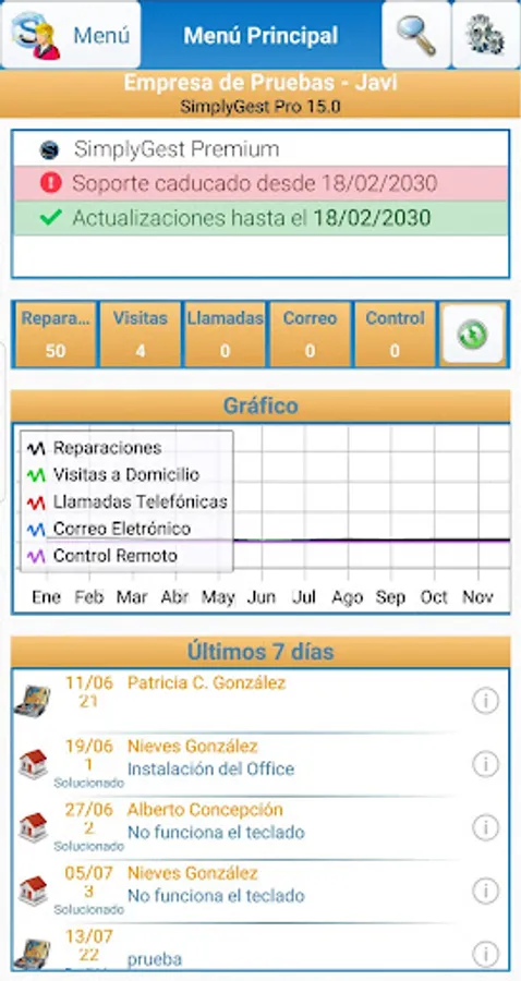 • Search services performed by type, status, date ...