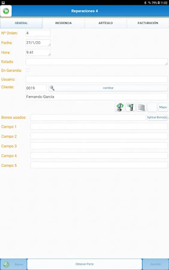 • Create new services and working parts from your mobile device in real time.
