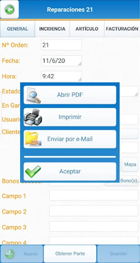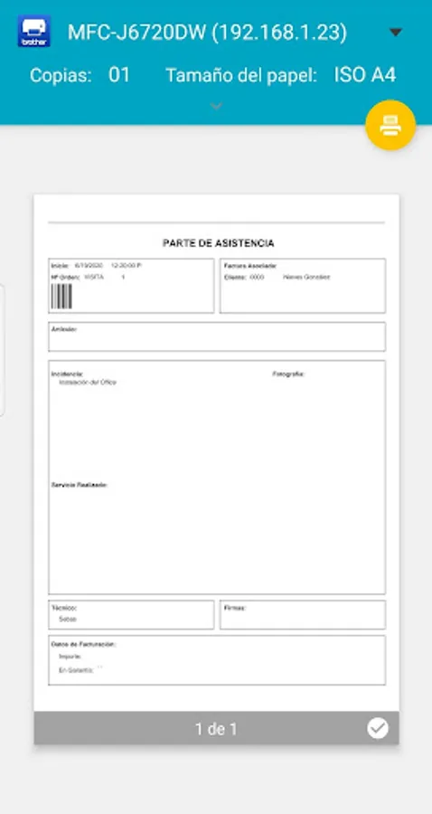 • Get the PDF part of a work / service or print from your device