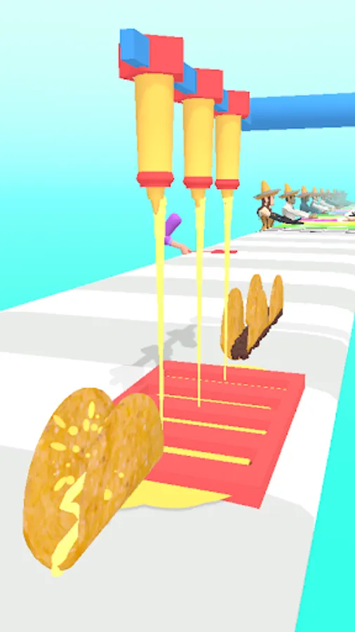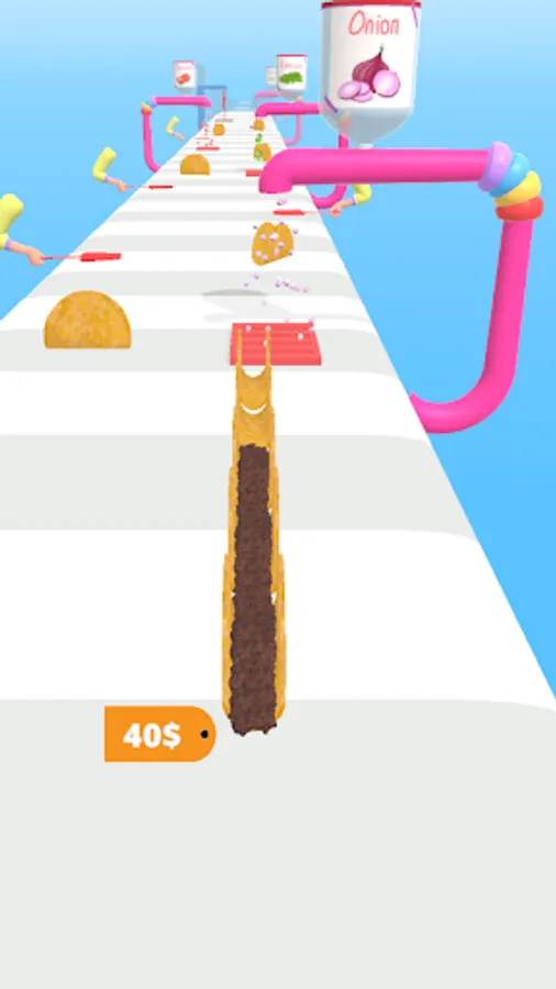 Taco Run is a game where you are filling your tortillas by moving them under dispensers that serves different ingredients. You can stack the best tacos ever made and serve them to people to enjoy! Make sure not to get caught and crush into the obstacles or your tacos will be vanished!