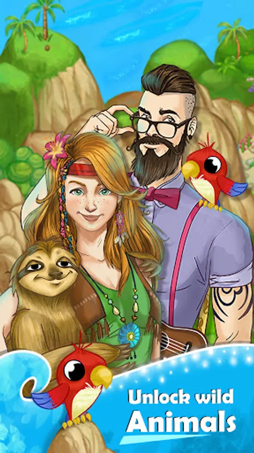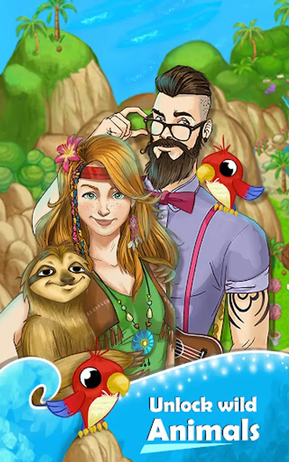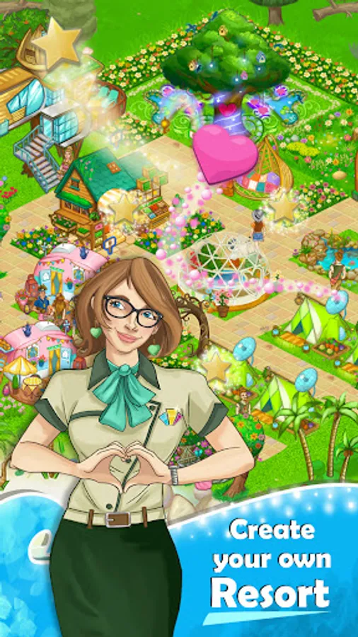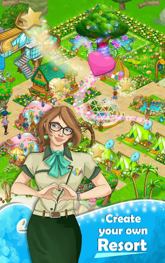 Accomplish over 250 Goals to keep your guests happy and build your empire. Upgrade the Huggable Tree, install luxurious accommodations & decor, visit the woodland spa or go shopping for souvenirs, rescue animals & swim with dolphins, keep the resort clean, and indulge in numerous other pursuits to earn precious Coins, Hearts, and Gems.