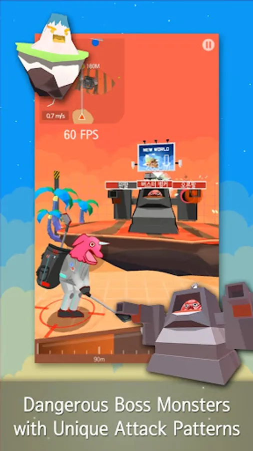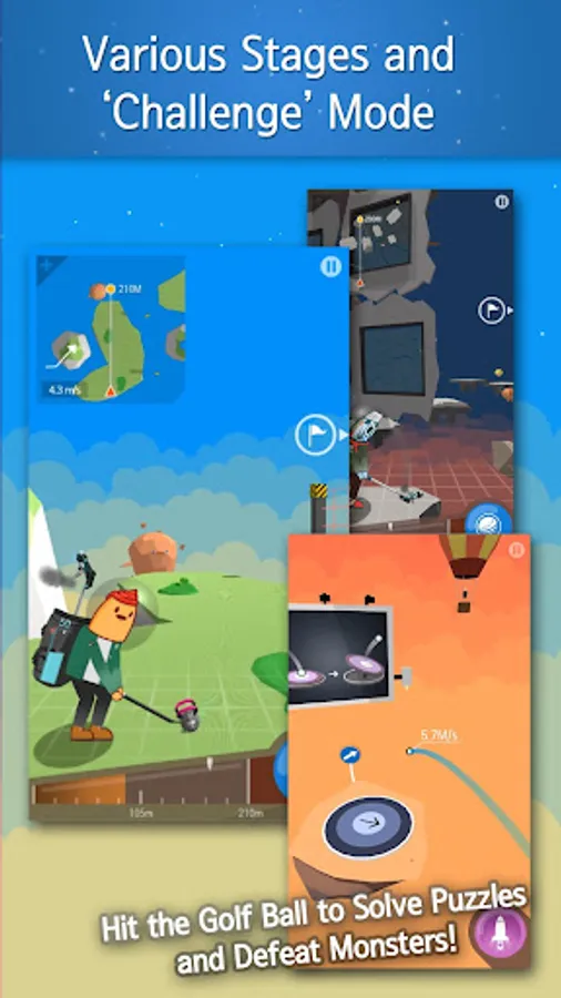 In Gwarp, you can attack monsters in the same way you hit the golf balls. The monsters will attack you in their own unique way making it more difficult to finish the courses. Try defeating the monsters with powerful clubs with awesome skills! Collect all the special attachments that can only be obtained from monsters!