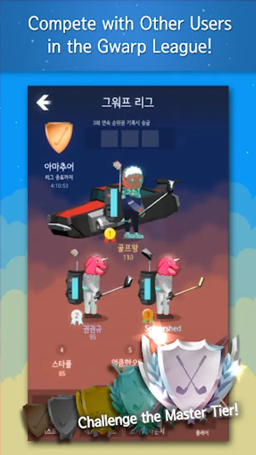 Once you feel like that you are ready to step up, try Gwarp League! In Gwarp league, you will be matched with other players who are in the same skill level with you. Finish three courses which will be newly selected twice a day, and your final score will be compared with others at the end of a league.