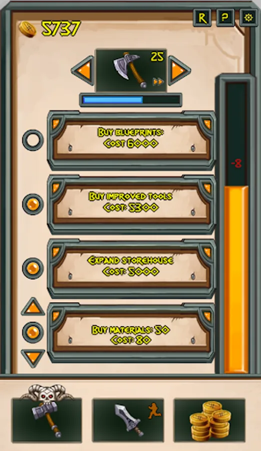 Fight Fund Forge is casual business sim managed across three screens. Set your forge to produce weapons, send your fighter off to hunt enemies, and sell the items he collects . Use the gold you get from the market to fund upgrades for all three.