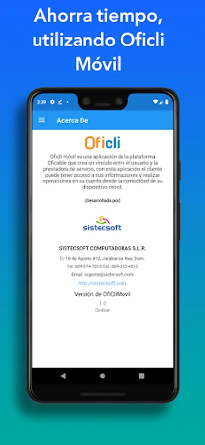 This application allows the client to have online access to the Oficable platform, from which the client can manage their data, make payments, report breakdowns, receive notifications and many more functions.