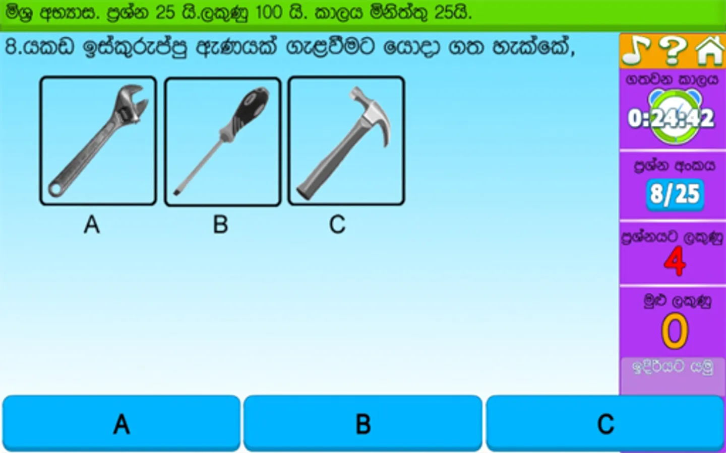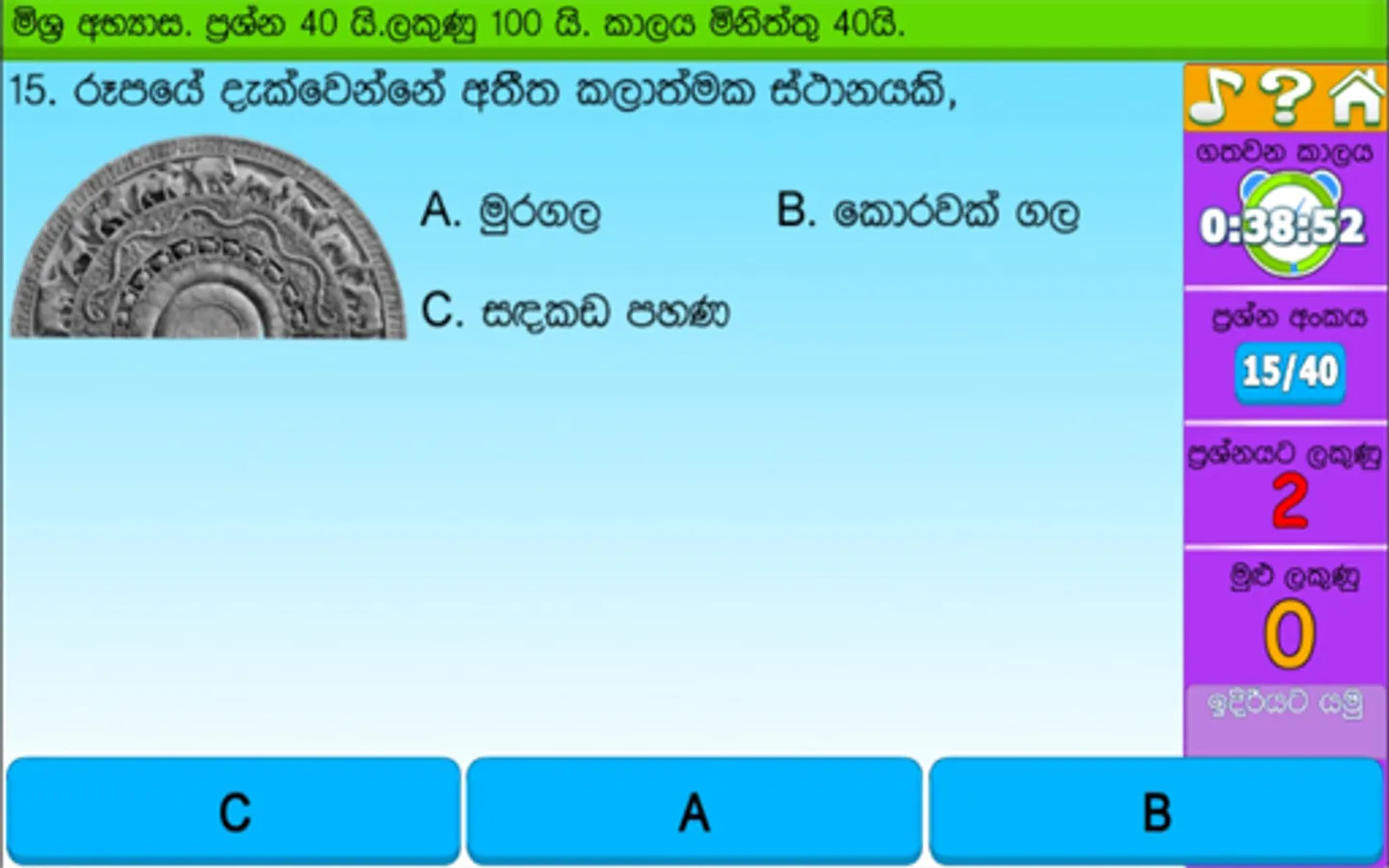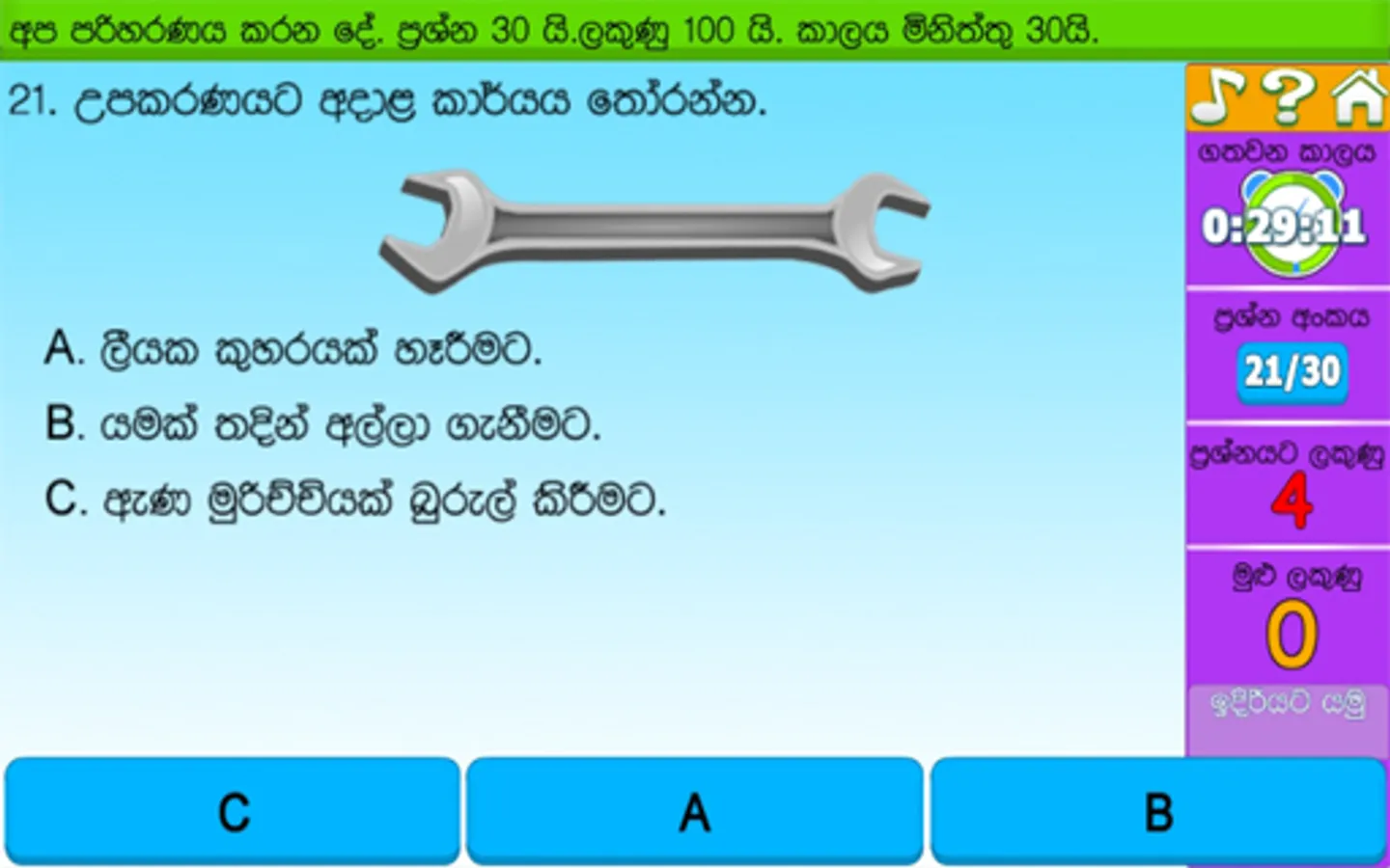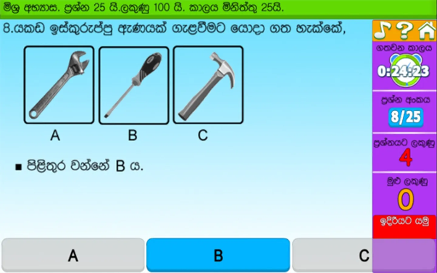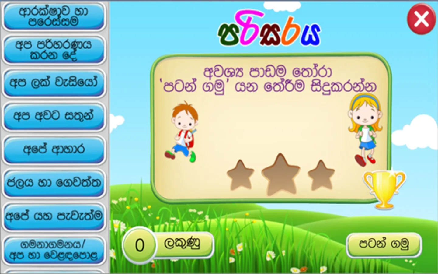 * This consists of a collection of questions and answers (Sisu Udana Classroom) presented with the aim of improving educational skills related to the subject of environment. Marks as well as answers to incorrect questions can be viewed.