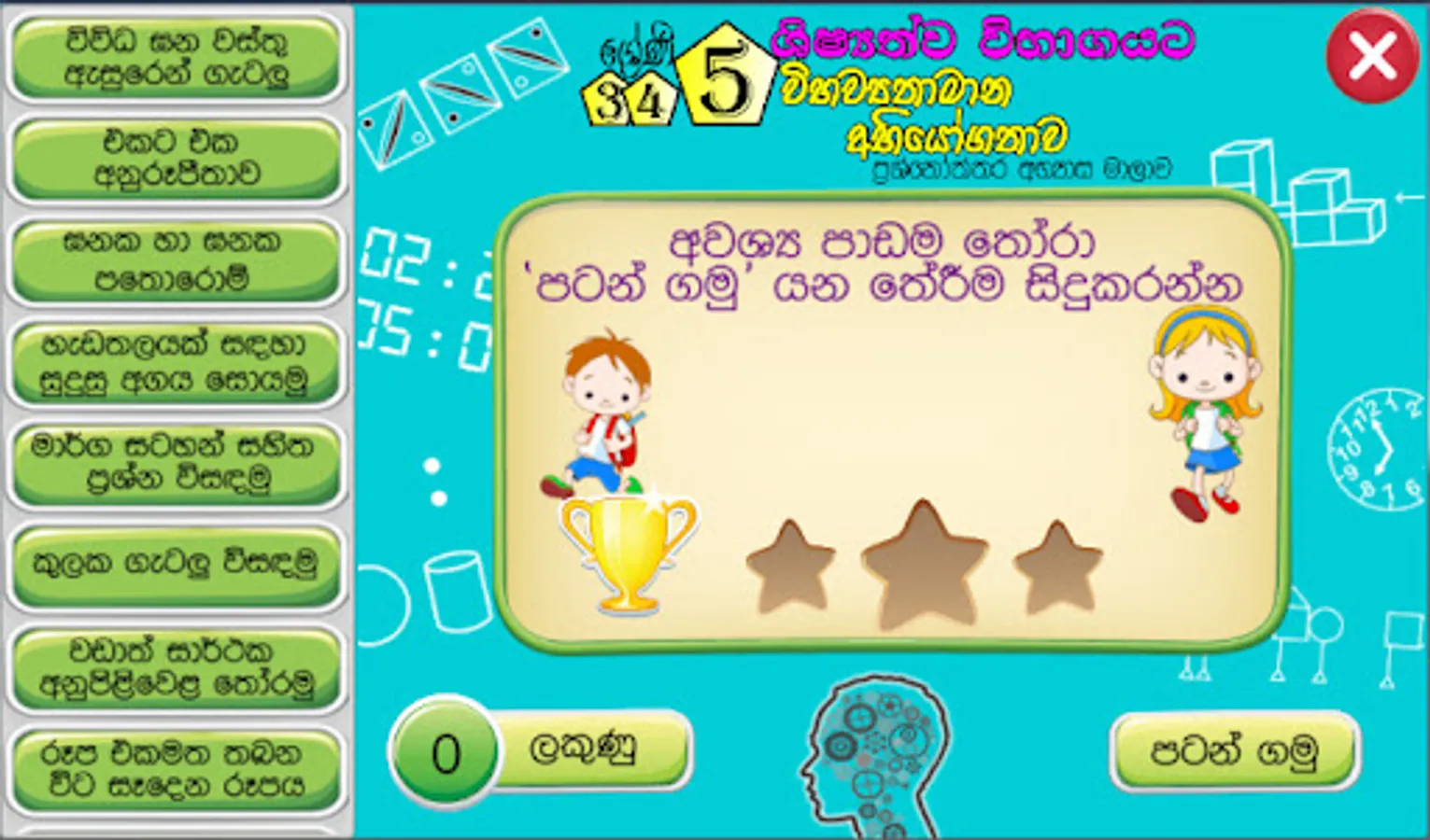 * This consists of a collection of questions and answers (Sisu Udana Classroom) presented with the aim of improving educational skills related to the subject of wibawatha. Marks as well as answers to incorrect questions can be viewed.