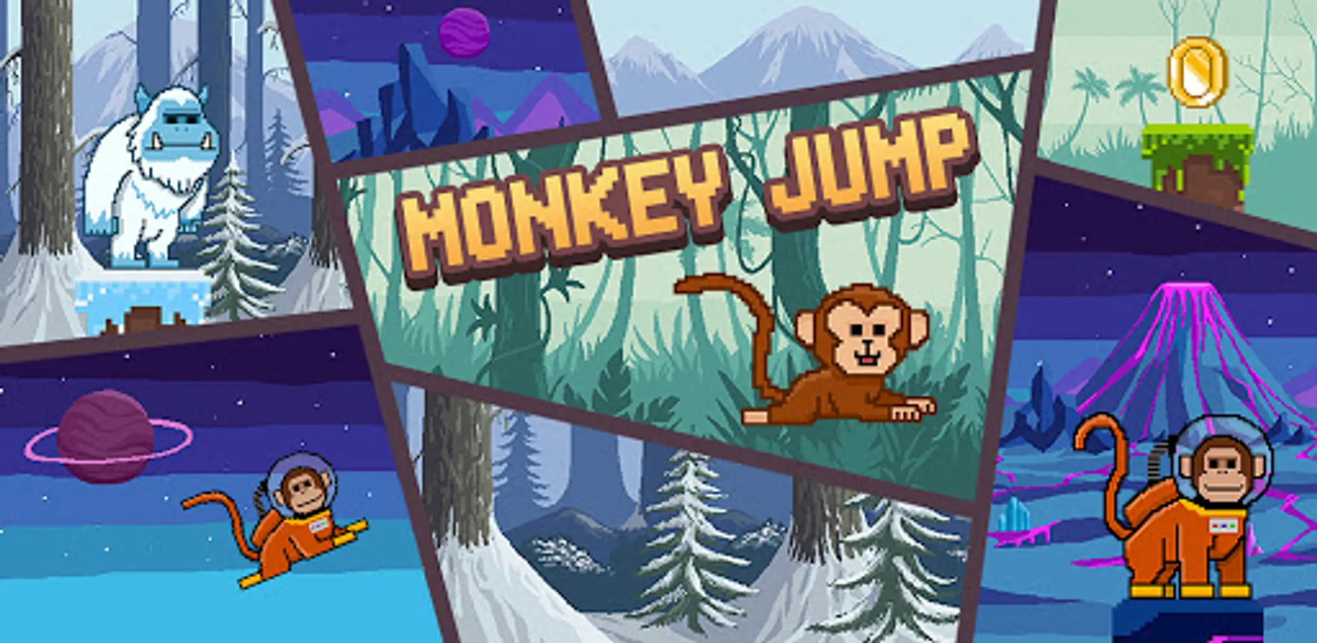 Conquer fantastic worlds, get all unique characters and become the best player in the world of Monkey Jump!
