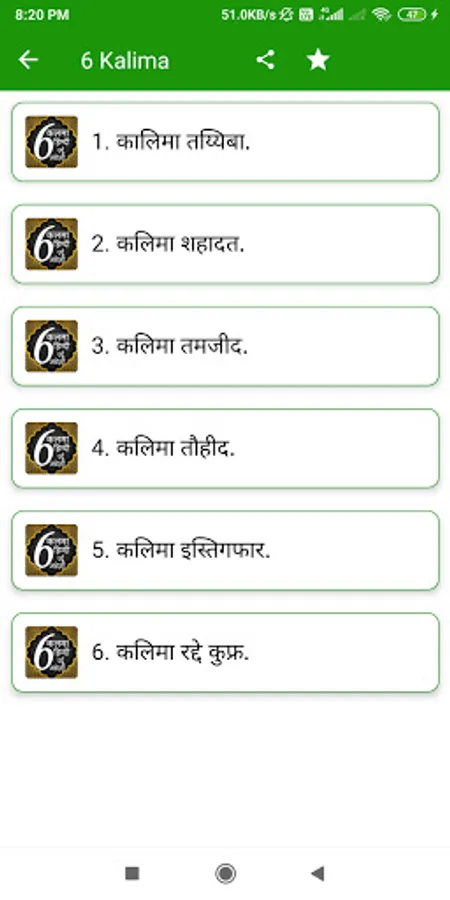 so guys hamne is app 6 kalimas Hindi urdu me 6 kalimas ko shaamil kiya hai hindi me aap is app ko download karke asani se use kar sakte ho, 6 kalimas Hindi urdu app apke liye bahut helpfull hone wali hai is app ko hamne poora hindi urdu aur english me banaya hai aap is app ko asani se pad sakte ho, six kalimas Hindi urdu app best app hone wali hai, guys agr aapko six kalimas Hindi urdu app ko use karne me koi problem dekhne ko mile to aap hamse problem share kar sakte ho.