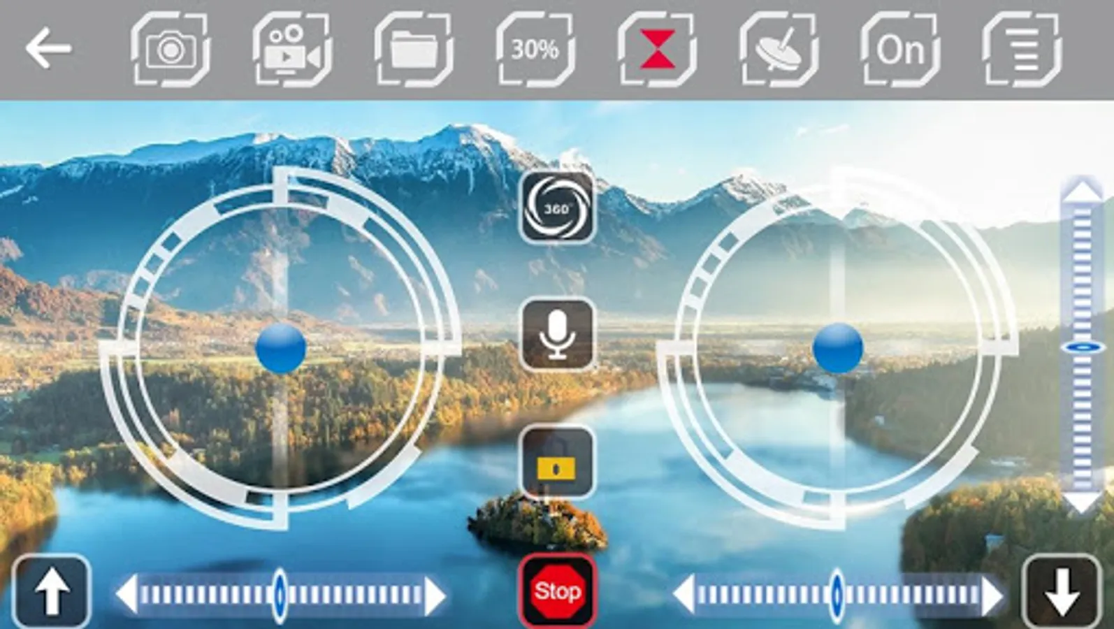 - Control / piloting interface via touch joystick