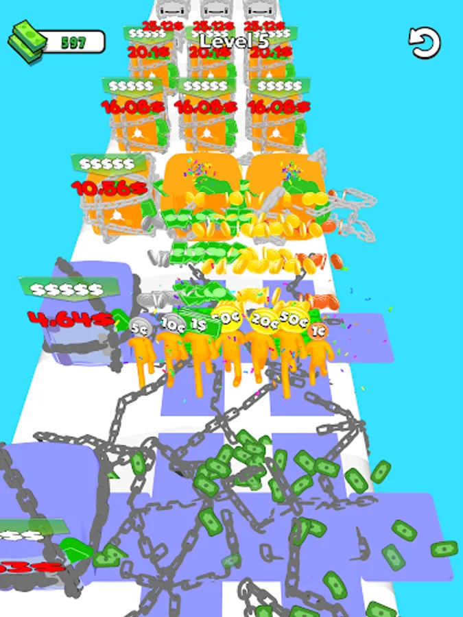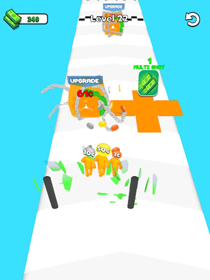 Then break the locks of money bags and safes, merge coins and get special upgrades!