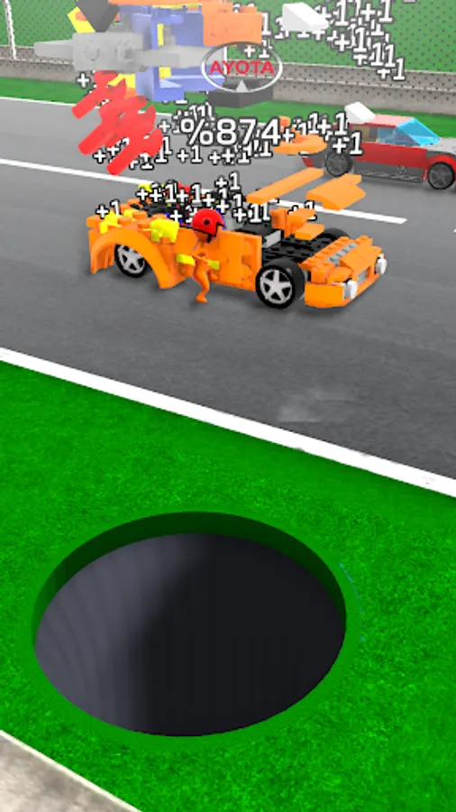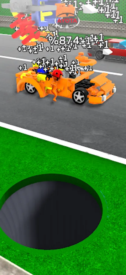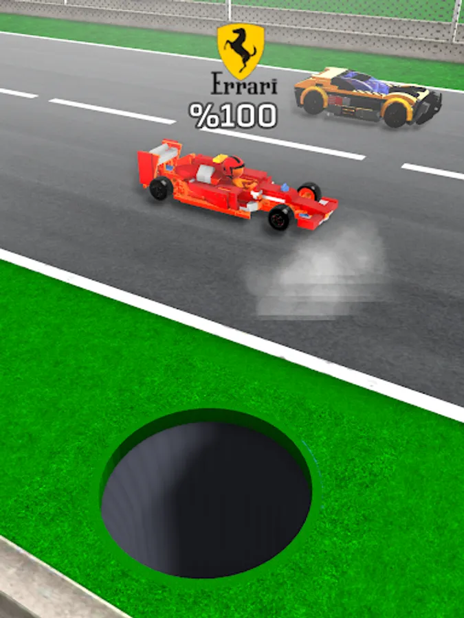 Collect car pieces using the hole and join the drag race by combining the parts!
