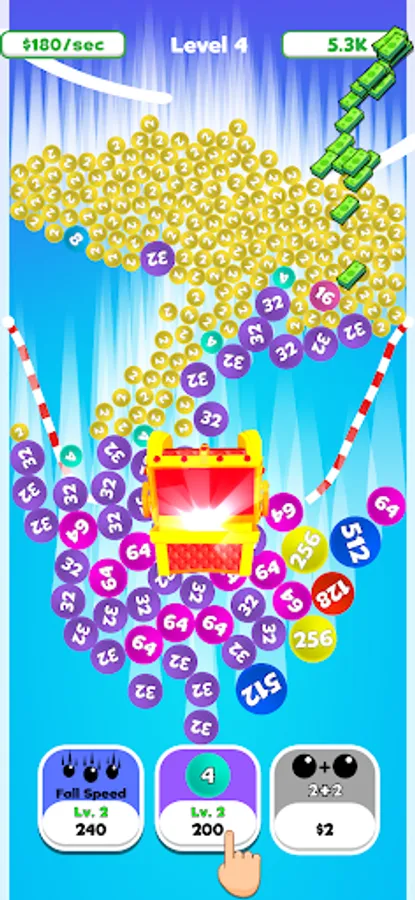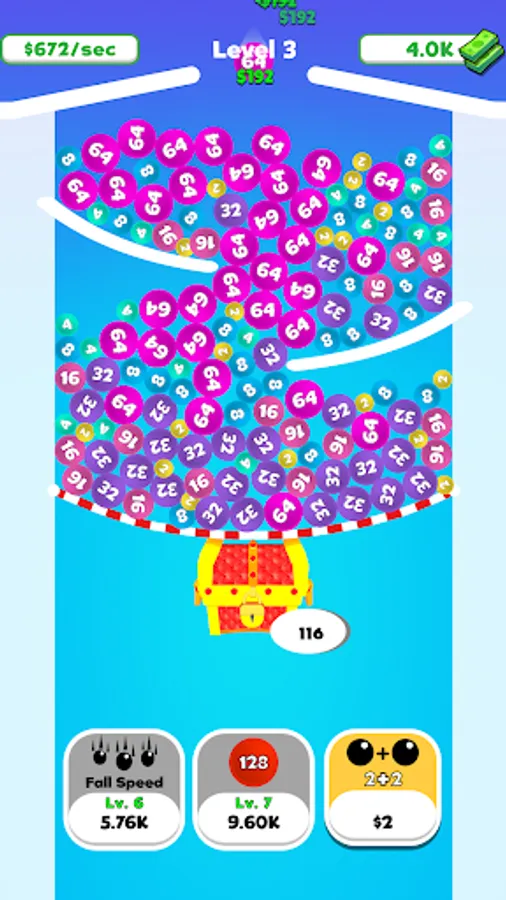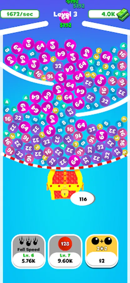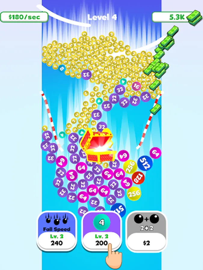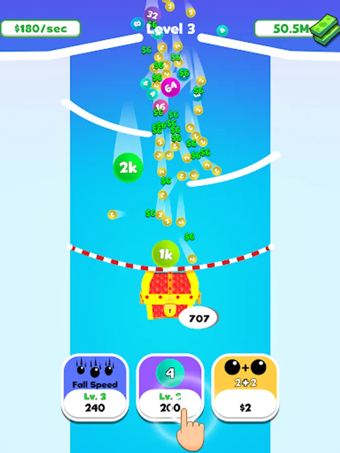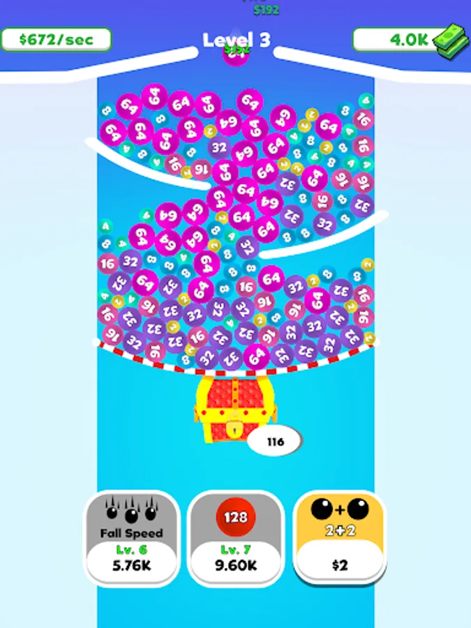 Click to break pesky chains to drop balls and collect rewards! Don't worry if you run out of space, just keep combining the balls.
