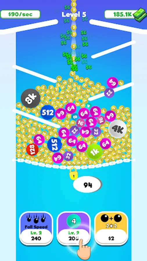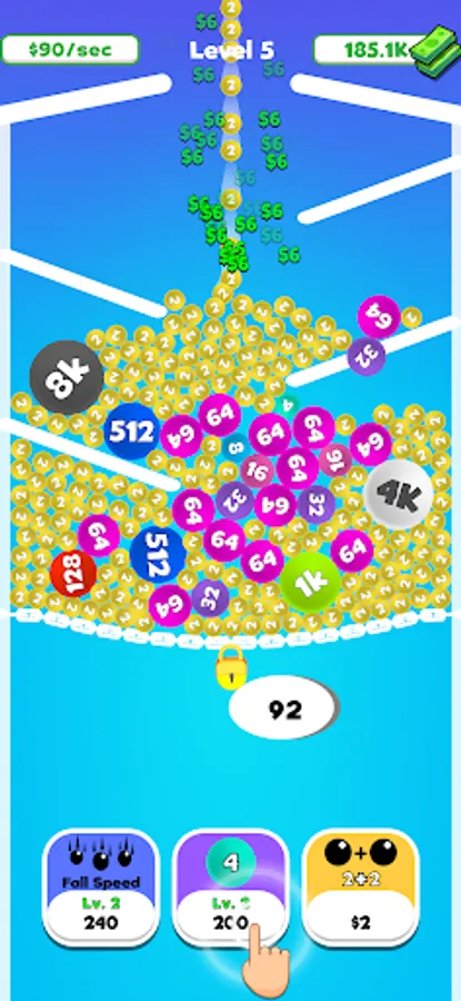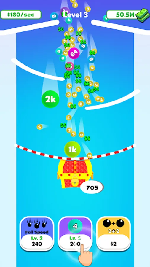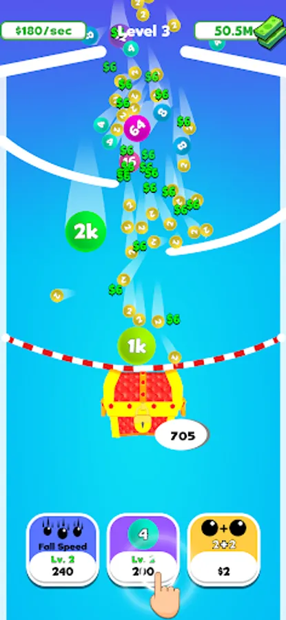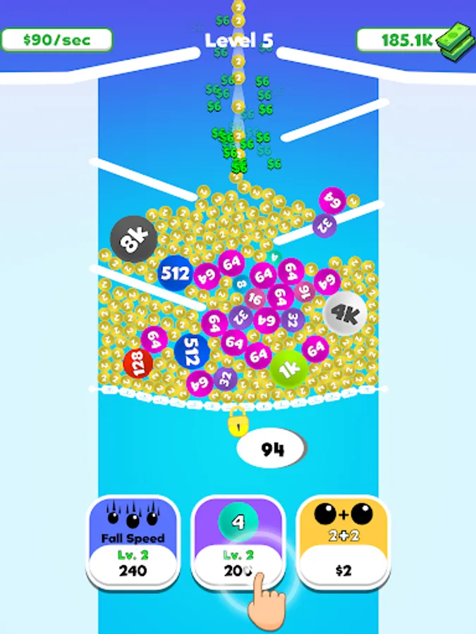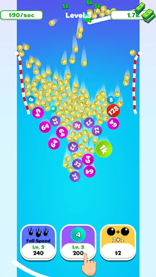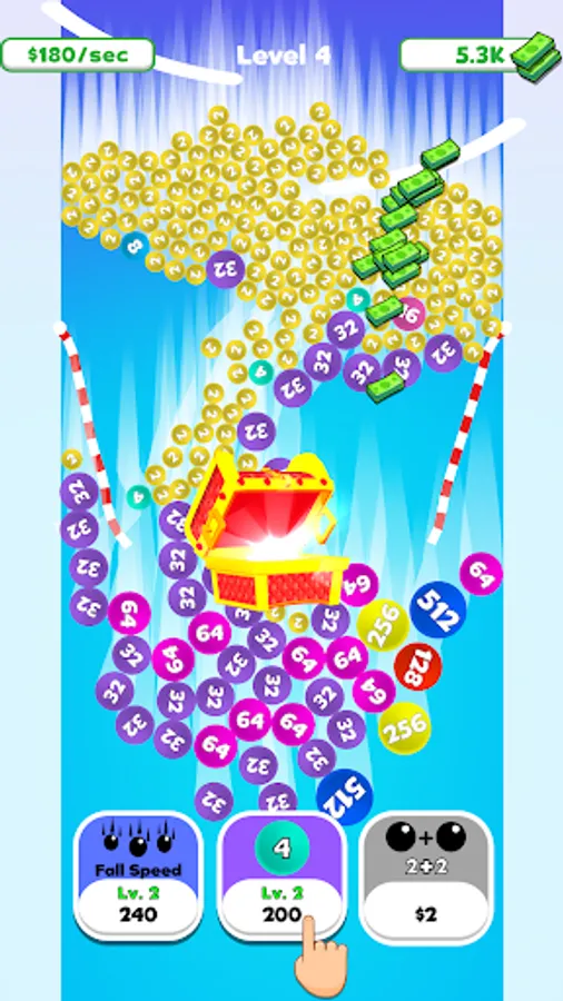 Click to break pesky chains to drop balls and collect rewards! Don't worry if you run out of space, just keep combining the balls.