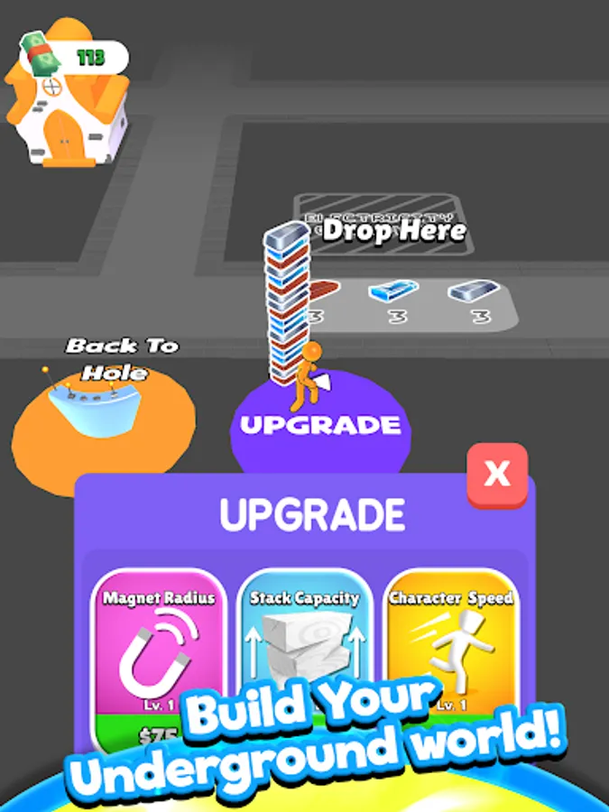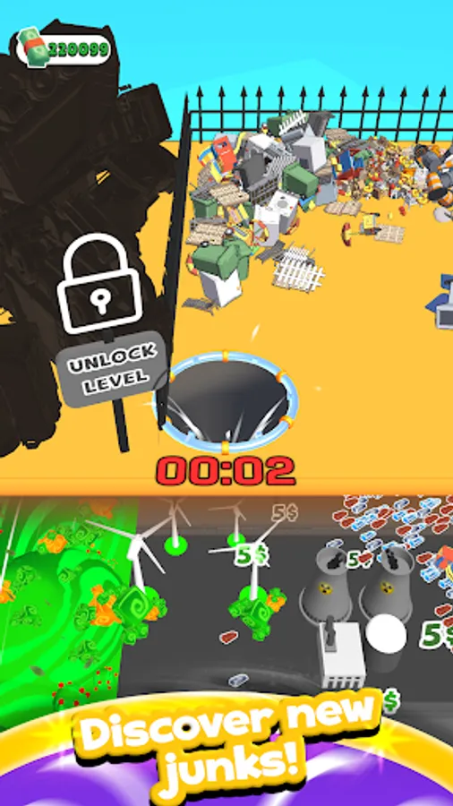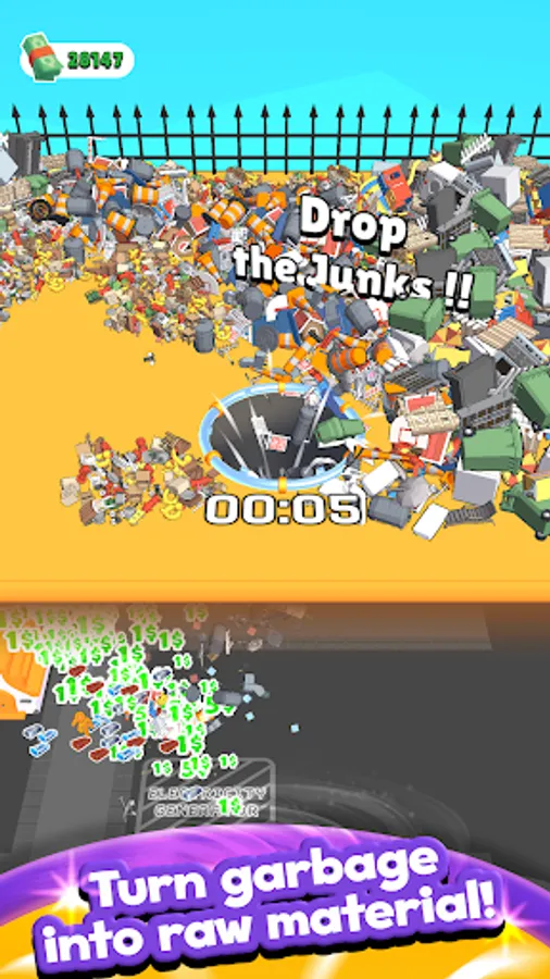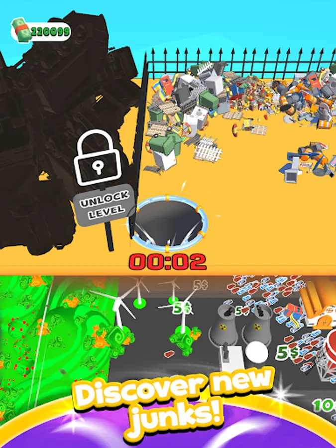 Use your black hole to drop the scraps underground, smash them and build a world from scratch with the resulting materials!