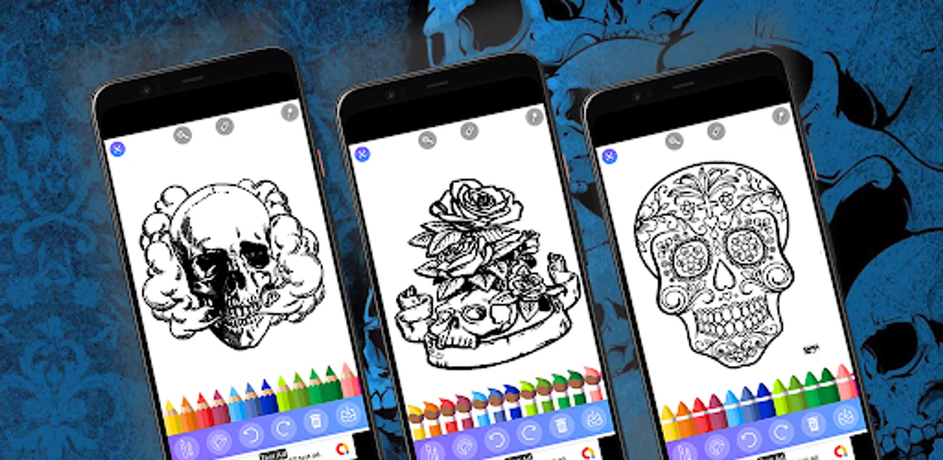Skull Glitter Coloring Book is the app for relaxation from your daily activity. You will find lots of latest cool skull coloring pictures with glitter brushes that you can color with your own creativity. recolor all fire skull pictures as many times as you want for free!