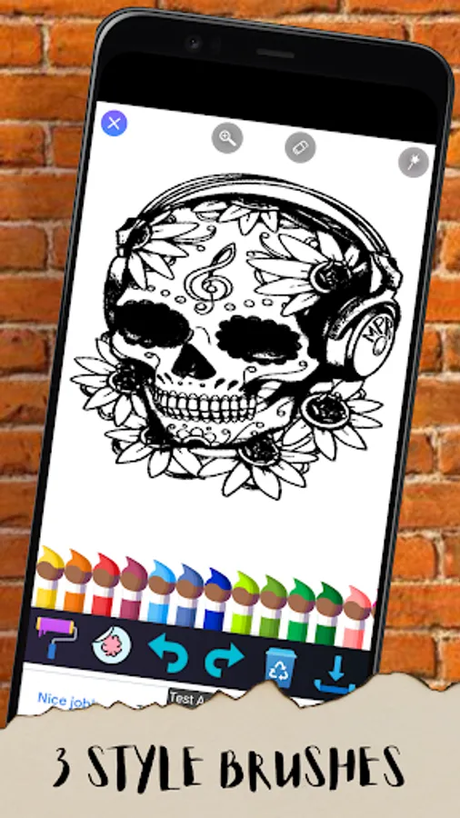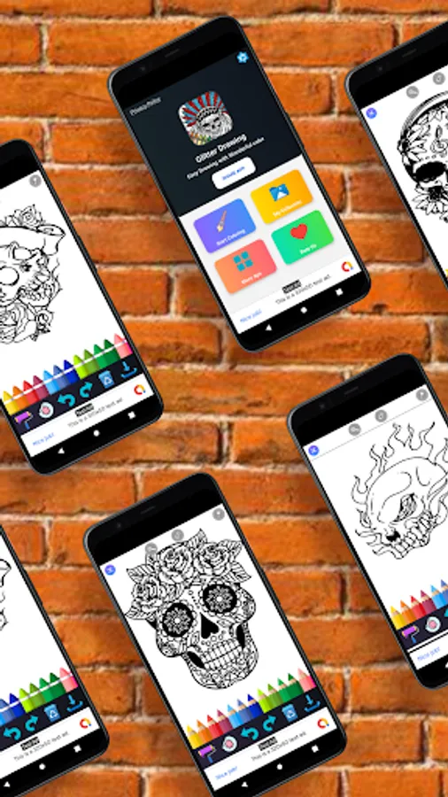 Skull Glitter Coloring Book is perfect app for those who want to be an artist and love coloring skulls with glitter brushes. This App teaches you how to color rich skull in simple steps and improve your confidence of painting.