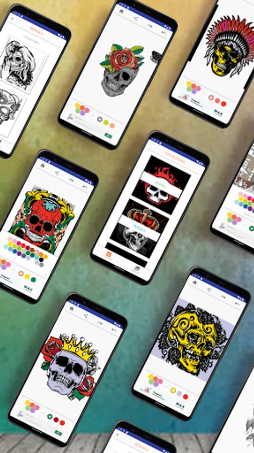 Sugar Skull Coloring Book is perfect app for those who want to be an artist and love coloring mandala skulls. in this Sugar Skull Coloring Book is tap to fill color and very easy to use app, everyone can color and paint these favorite Skull gothic drawing pages. It enhances the vitality of the brain.