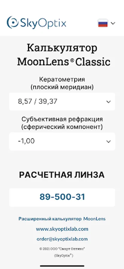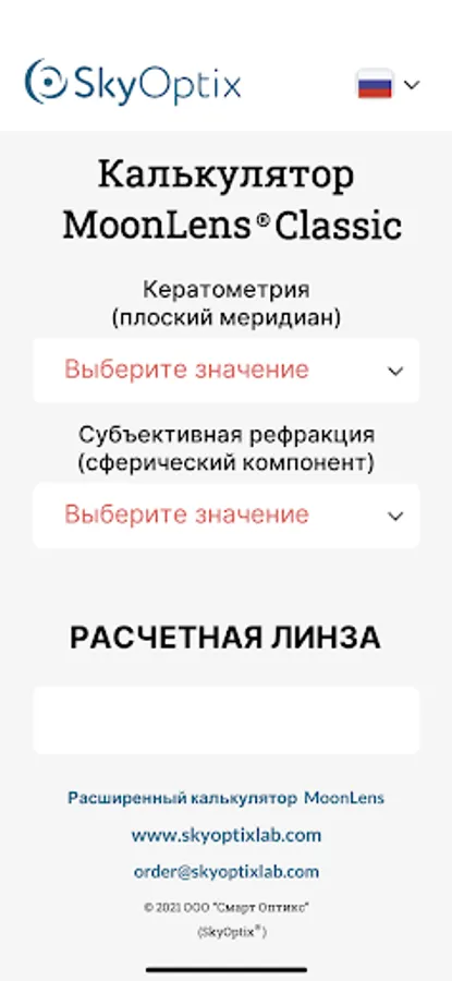 The SkyOptix calculator allows you to calculate the lens according to individual parameters in 30 seconds, which is convenient for specialists and saves time at a doctor's appointment.