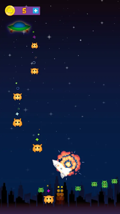 In Ufo Attack, you become humanity's last hope against an alien invasion. Armed with a sharp spaceship, you must navigate through a barrage of enemy fire and eliminate the extraterrestrial threats. This casual game features fast-paced action, challenging gameplay, and impressive visual effects. With each level, the aliens will become stronger and more numerous, so you must skillfully wield your ship's weaponry to emerge victorious. Can you save the Earth from the intergalactic assault? Download Ufo Attack and find out!