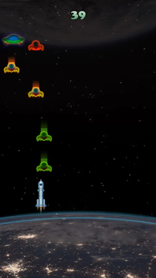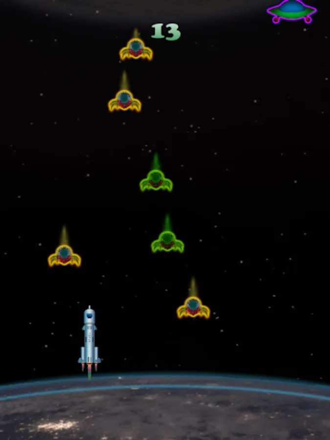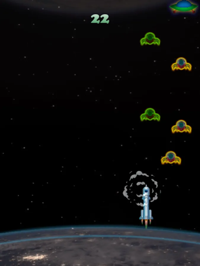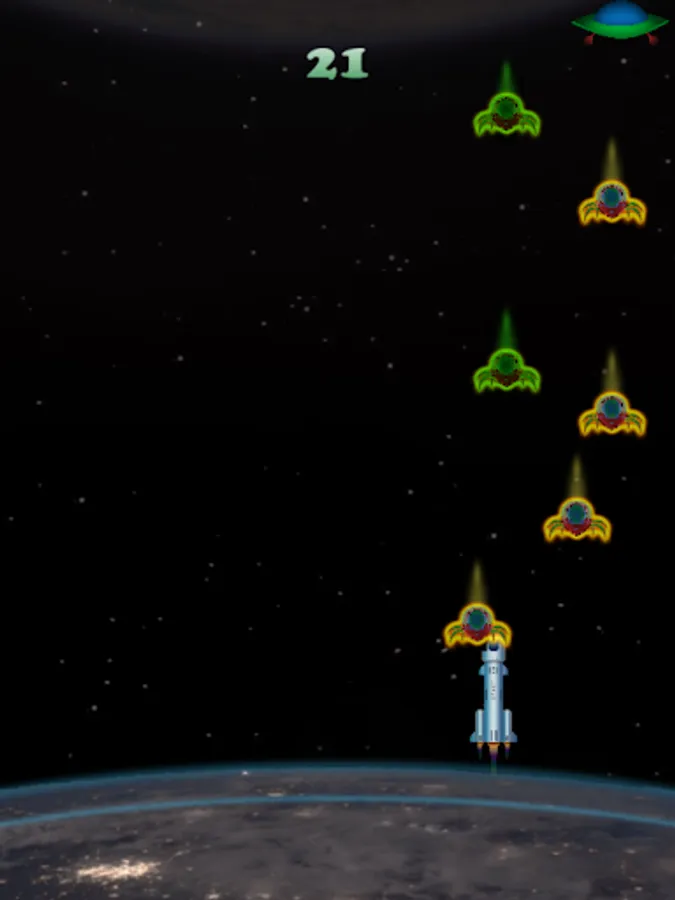 An alien spaceship is trying to conquer the planet Earth. Kill the Alien with the sharp tip of your spaceship moving Left - Right