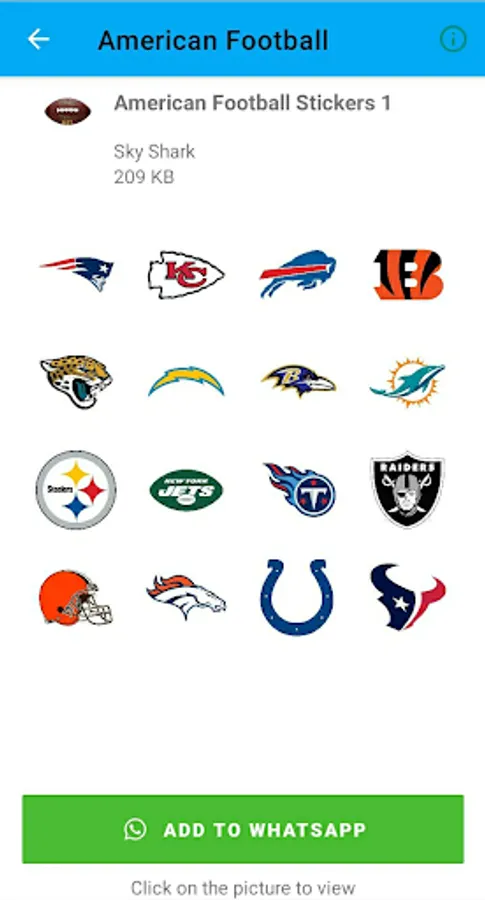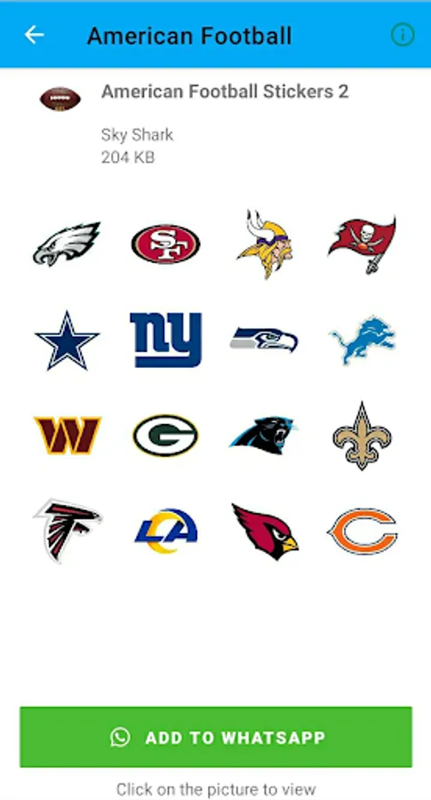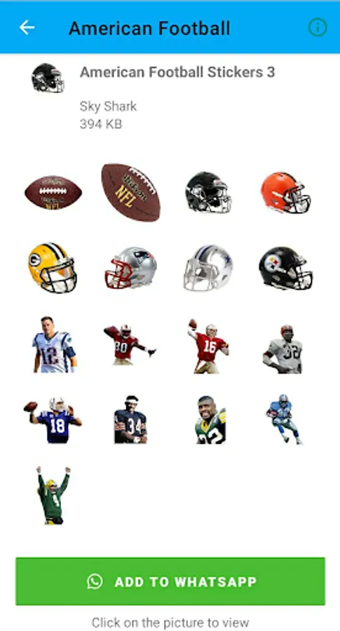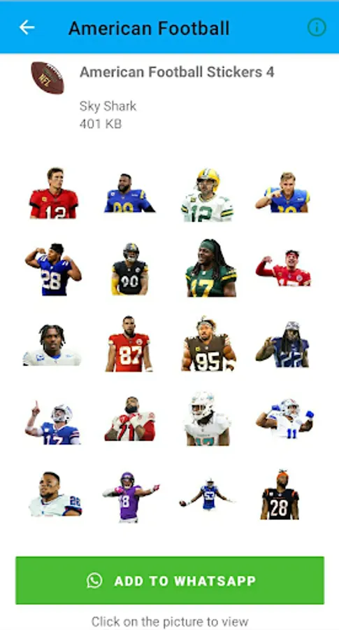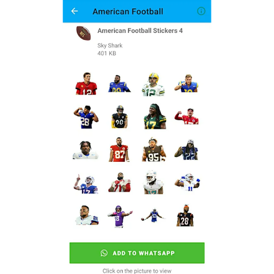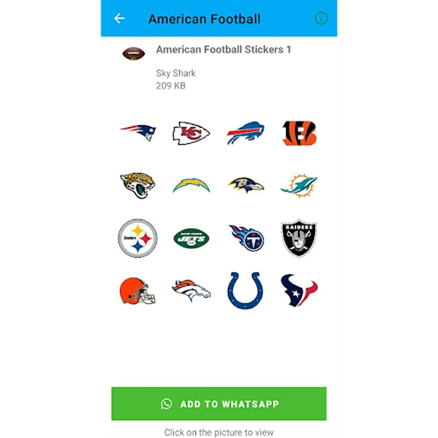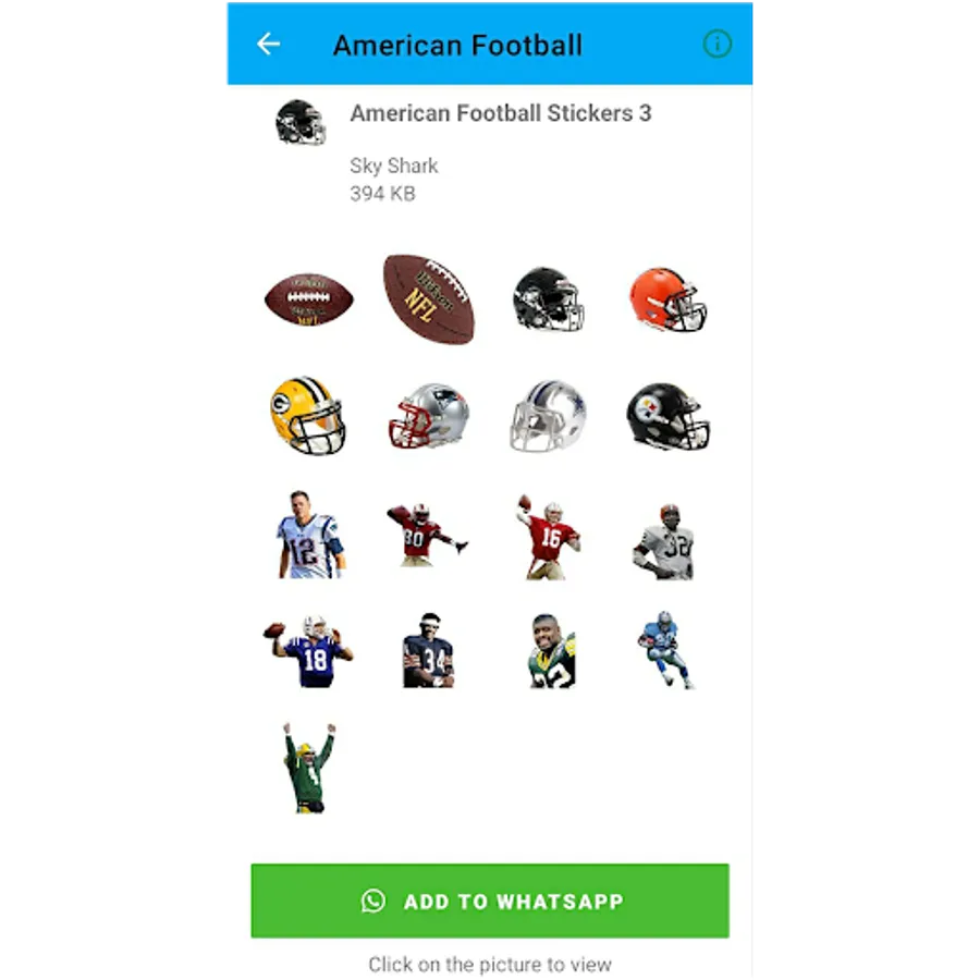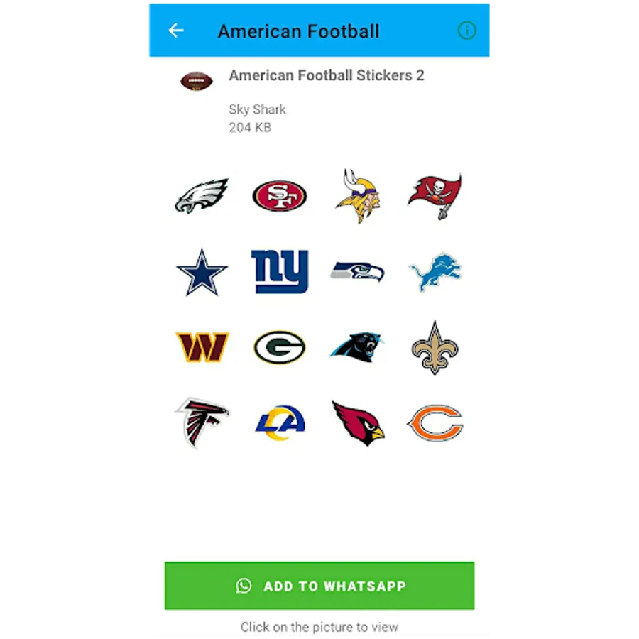 American Football Stickers for Mobile Devices. This application contains stickers of NFL teams and the main players that make up the main American football league in the world. It is important to mention that this application is not official. And its main objective is entertainment for sports lovers.