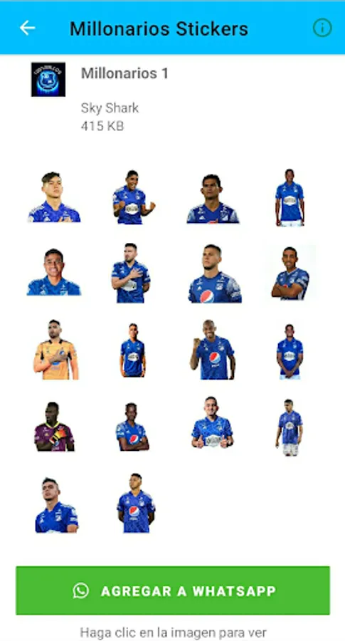 This application contains incredible Stickers from one of the biggest clubs in Colombia and the world. Millonarios Fútbol Club is popularly known by the nickname of Millos. Totally free, this application is not official.