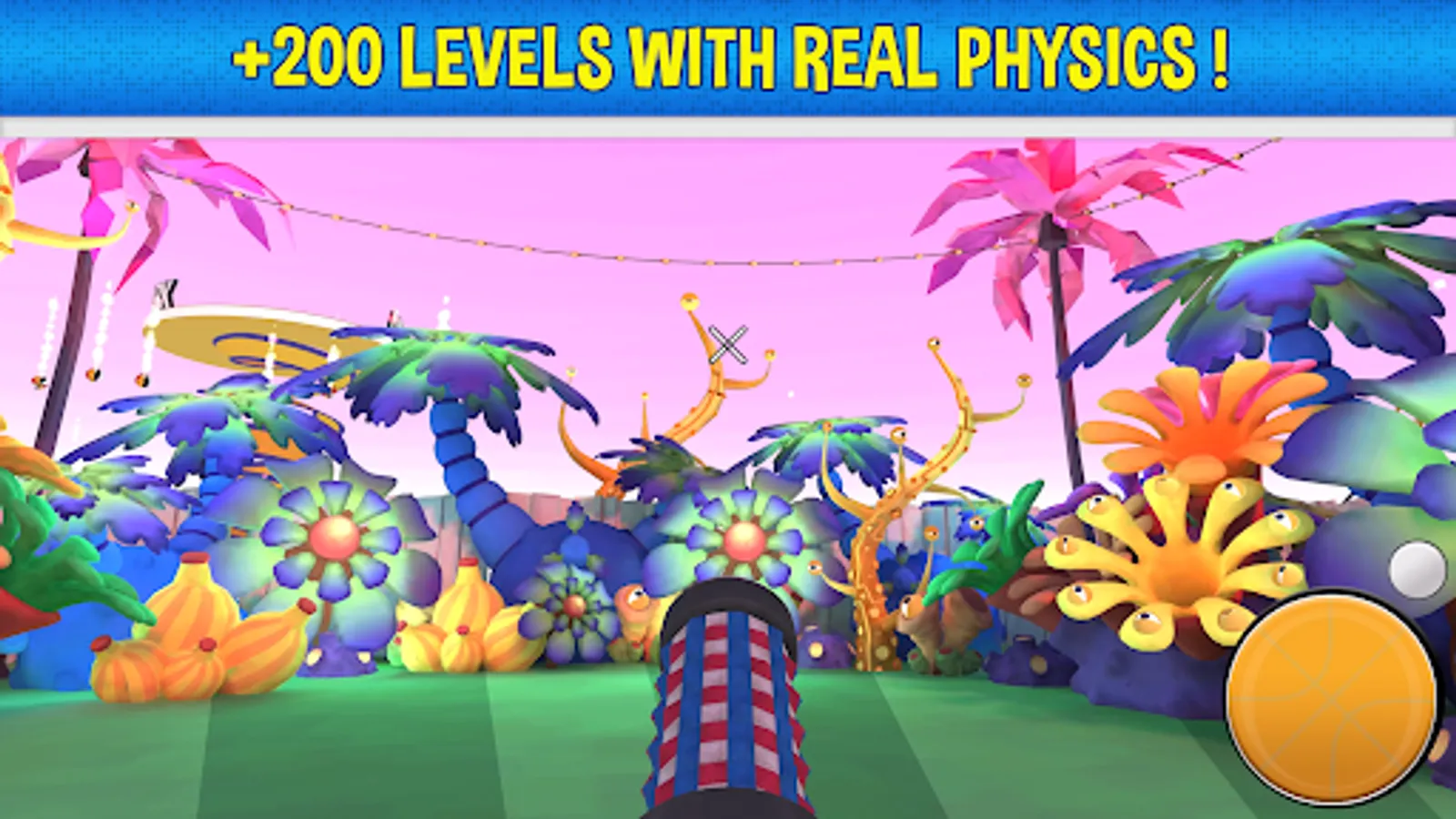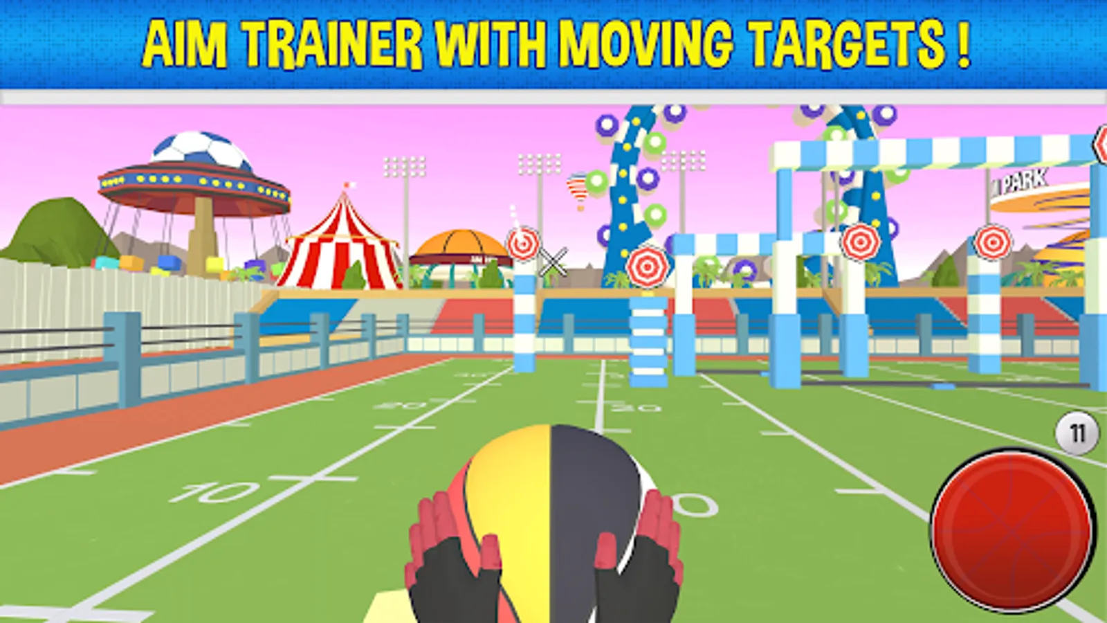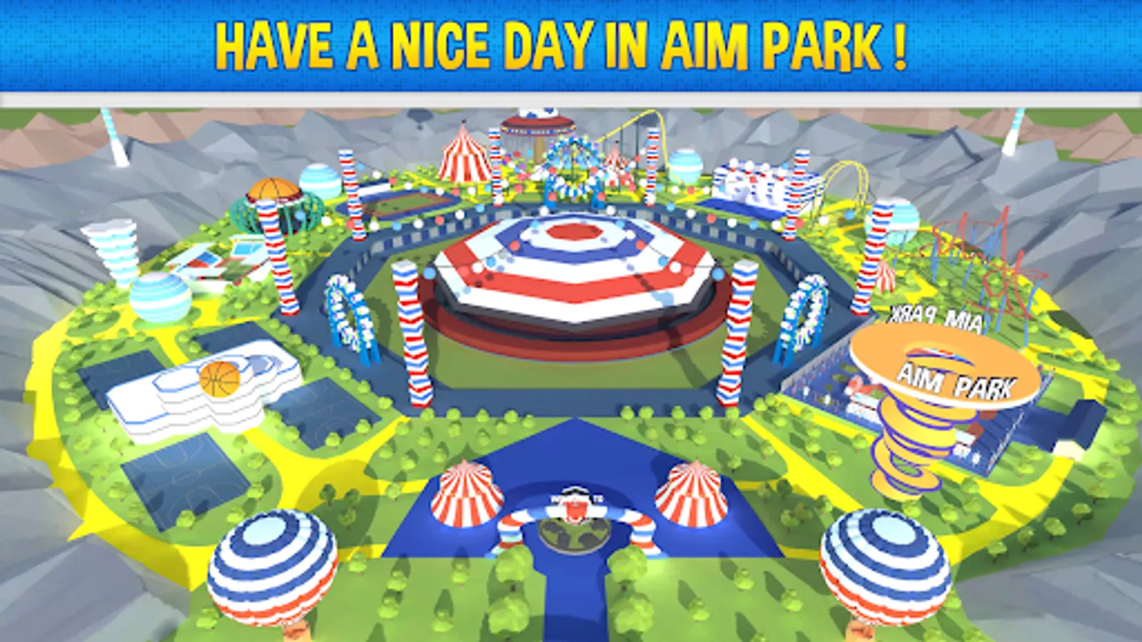 Aim Park is a casual action game set in an amusement park full of aiming challenges. The game features colorful 3D low poly graphics and over 200 different levels, each with a unique objective. Instead of using firearms or bows and arrows, players must use sports balls like basket balls or soccer balls to shoot at targets and baskets. Aim Park stands out from other games because it does not involve the use of weapons. In some levels, you will throw the balls with your hands, while in others, you will use a launcher. However, the physics of the game always apply. Aim Park offers a variety of levels, including shooting at targets, making baskets, and taking other marksmanship tests. You can also throw balls at UFOs, balloons, zeppelins, and other types of targets. There is a level for every preference, and you are sure to find one that you enjoy. To complete each trial, you will need to use your aim, dexterity, skill, and precision. The game is both fun and challenging, and it will keep you entertained for hours while also serving as a great stress reliever. Aim Park is a mobile game that combines excitement, action, adventure, competition, and skill. Players must use concentration, precision, and skill to progress through the levels and emerge victorious.