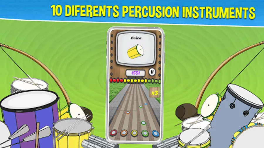 In this percussion game you will be able to learn guitar hero style rhythmic patterns that mimic the movements performed on each percussion instrument, so get ready to learn Brazilian culture rhythms to the rhythm of the carnival. You will have rhythmic patterns of the following instruments: