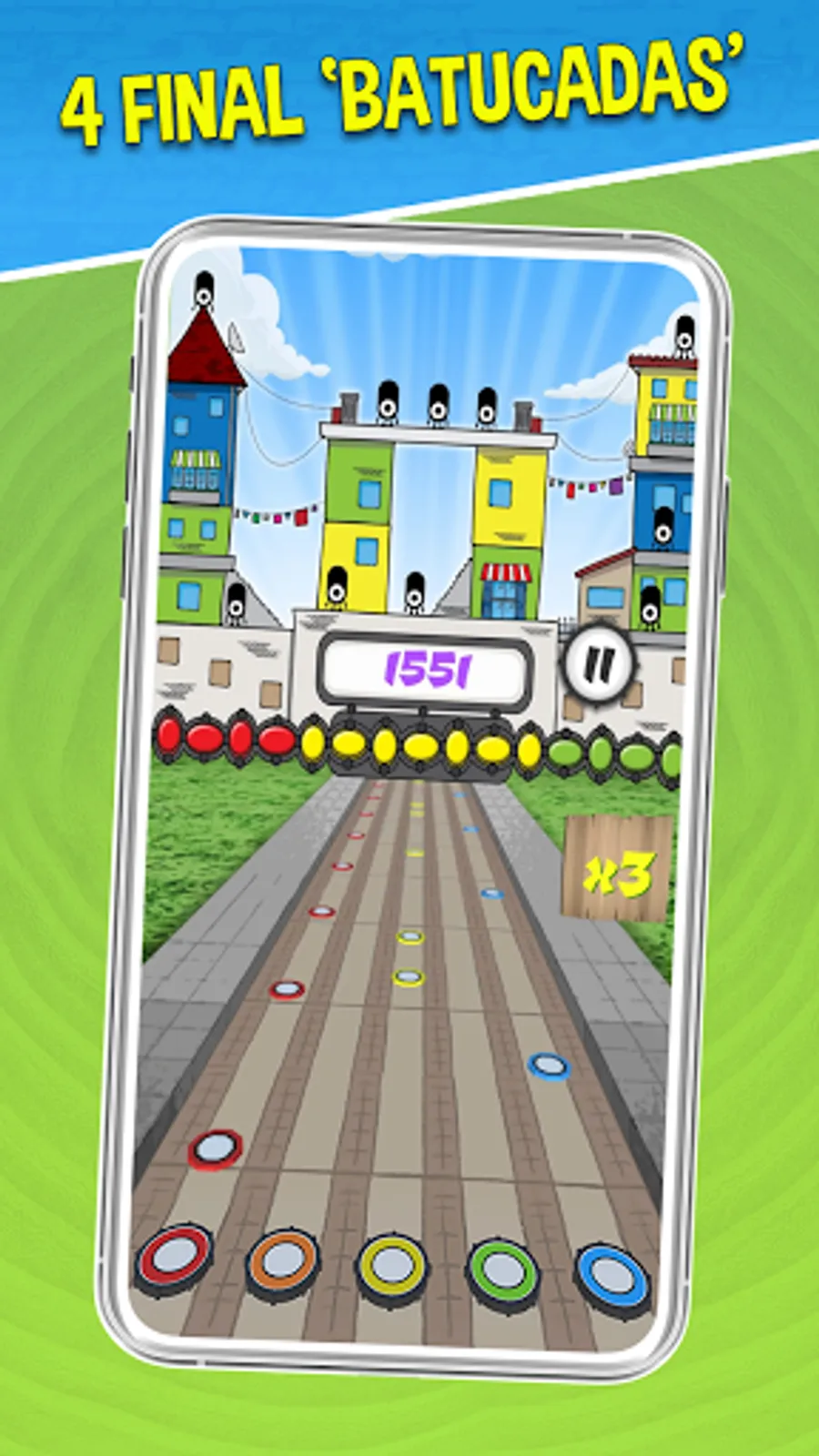 In addition, each time you complete the different levels of rhythmic patterns, you will be able to access the concert screen, where you can enjoy the complete batucada combining the different rhythms together.