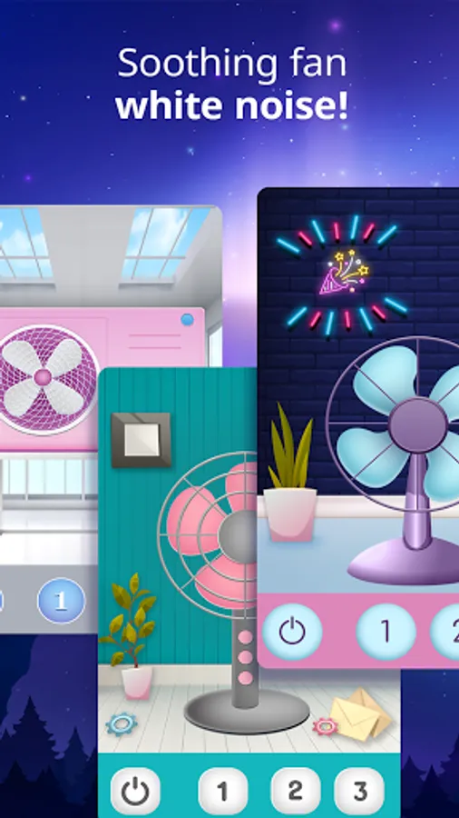 Join our community of satisfied users who enjoy fan sounds to help you sleep and wake up ready for another day. Whether you aim for 8 hours of you just want to have a quick afternoon nap, the white noise fan app is here for you. Set the timer the way it suits you, choose your mother tongue to use the app easily, and pick colorful backgrounds which we have designed especially for you. Choose “sleep fan sounds app” and enjoy using it at bedtime.