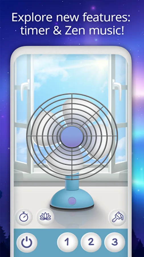 Go to the land of dreams and wake up well-rested tomorrow with our unique Sleep Fan App. Go to bed listening to smooth relaxing white noise that will help you calm yourself and fall asleep fast! Whenever you feel tense or nervous before bedtime, use this portable fan app for sleep free which will bring you relaxing sounds to help you drift off much easier. Use the proven techniques to get a good night's rest by using the most soothing sounds which are just a click away. Download this white noise app for sleeping, check out different backgrounds and styles and relax just like you deserve!