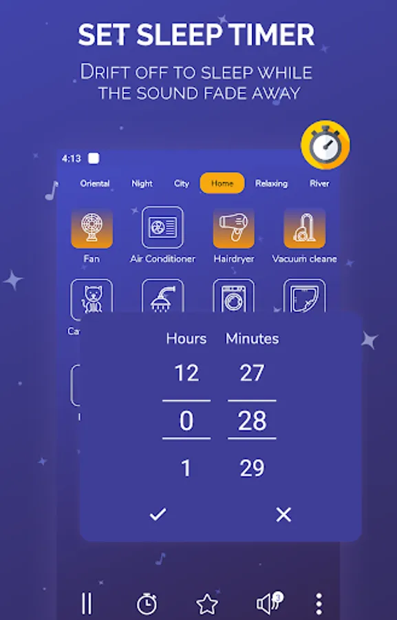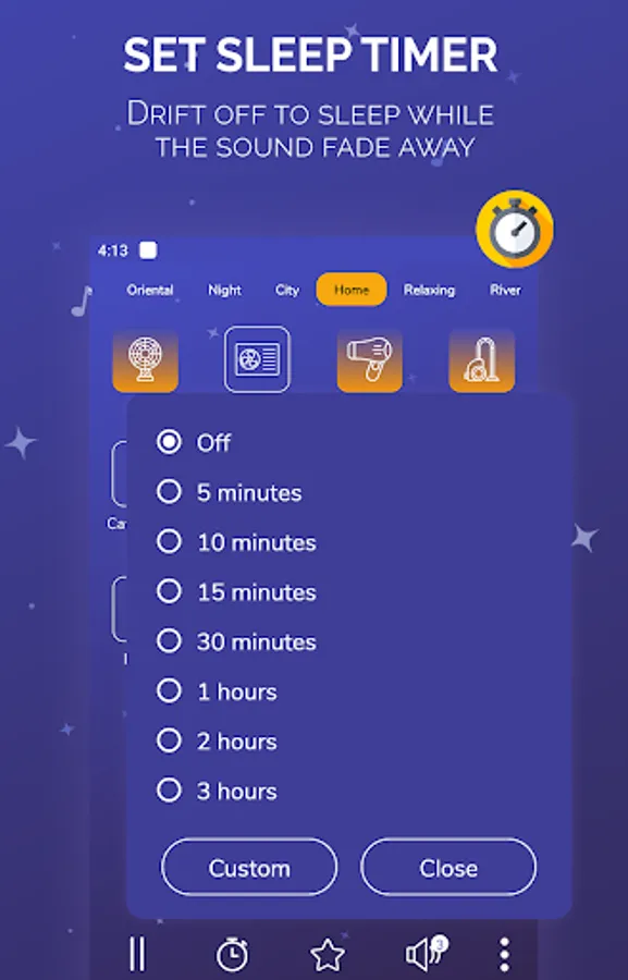 Sleep Sounds app offers a wide variety of sleep sounds and music carefully curated to aid you in your journey to dreamland. From gentle raindrops and ocean waves to soft piano melodies and lullabies, our extensive collection has something for everyone. Whether you prefer nature sounds, instrumental tunes, or ambient music, you'll find the perfect selection to suit your personal taste and help you drift off into a state of pure relaxation.